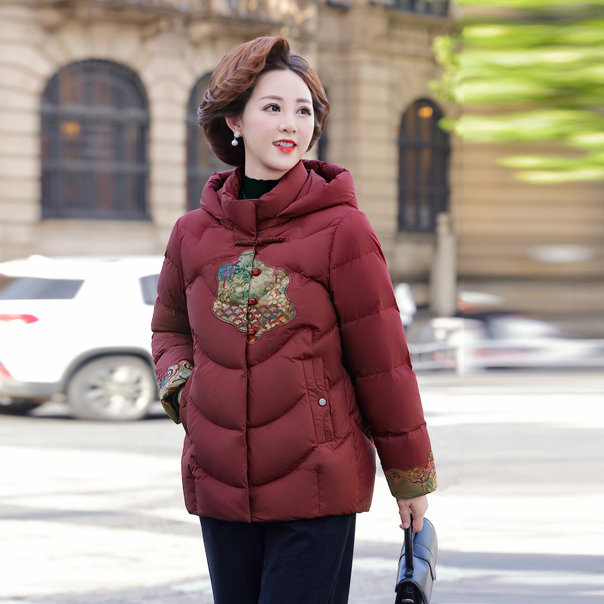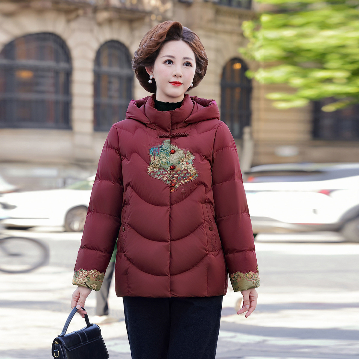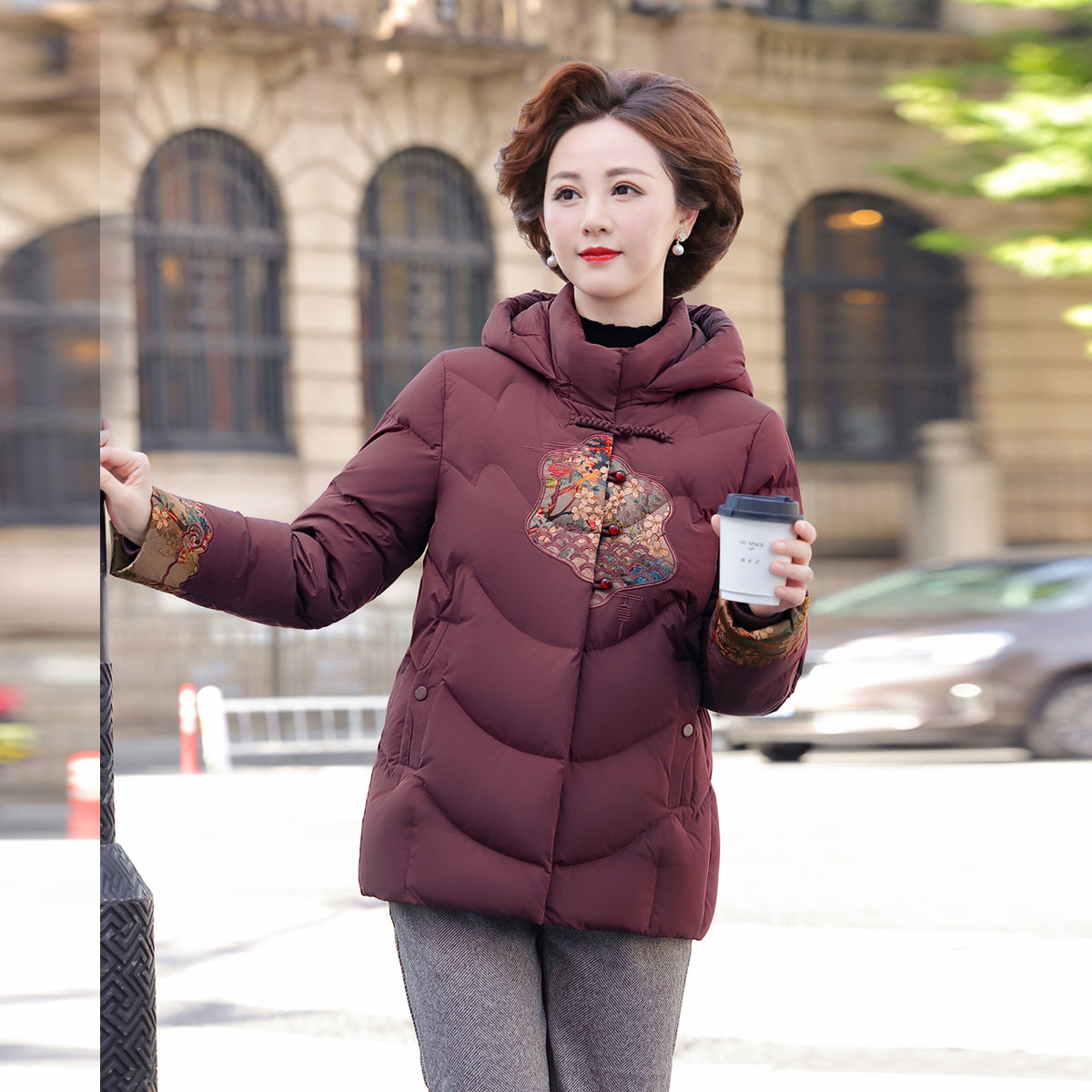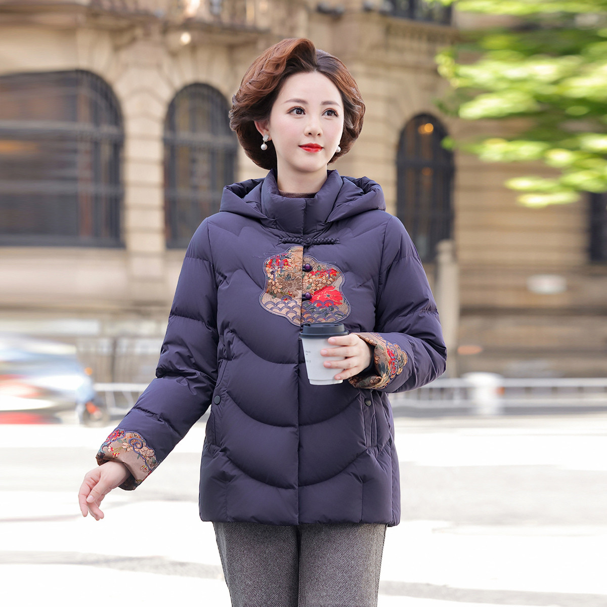 雪中飞2025冬新款羽绒服气质妈妈款中老年国风印花新中式简约保暖
