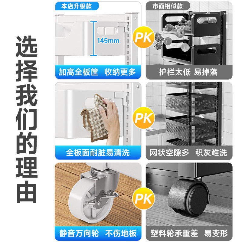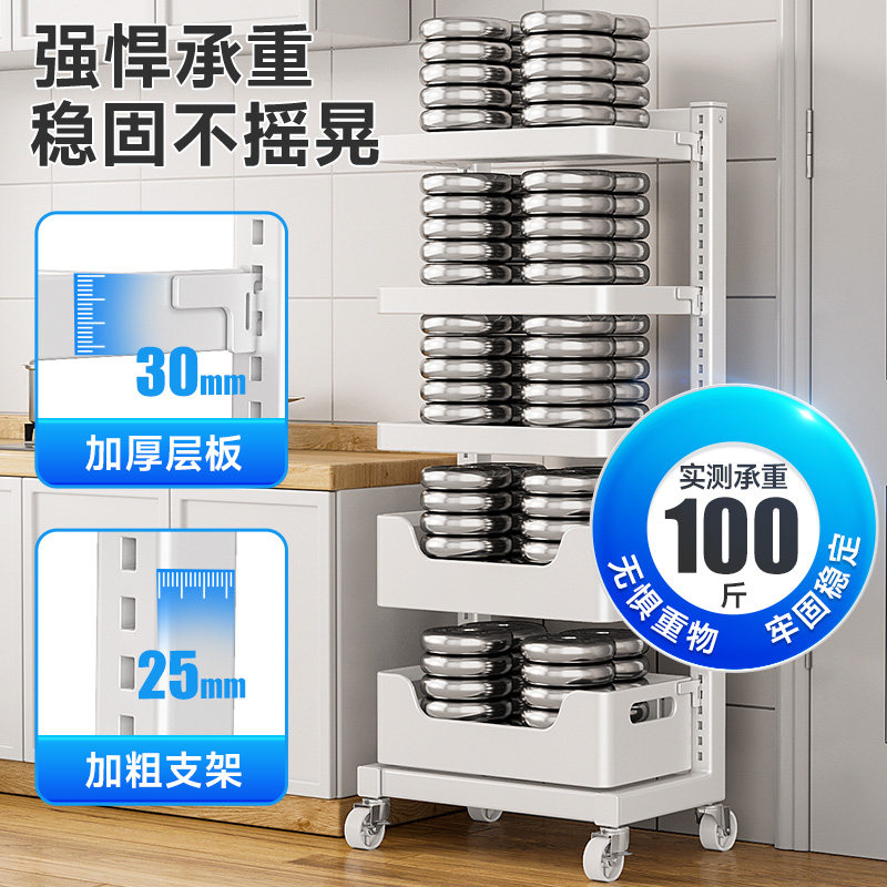 厨房置物架可移动落地锅架多层放果蔬菜篮子锅具收纳架推车分层