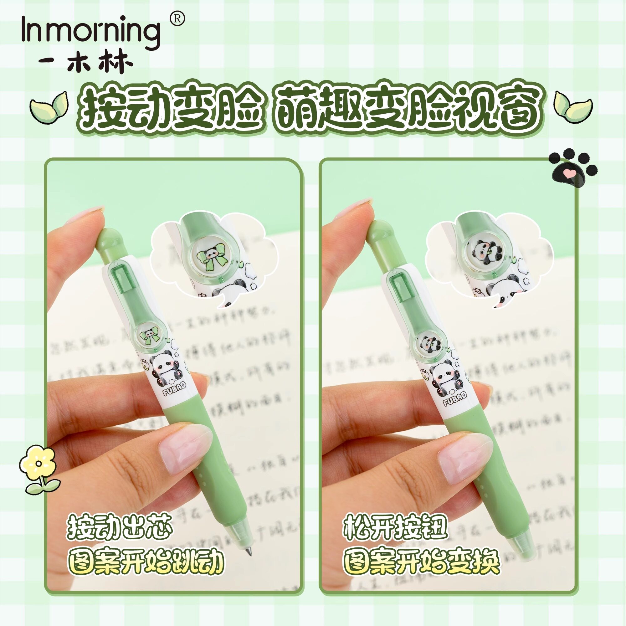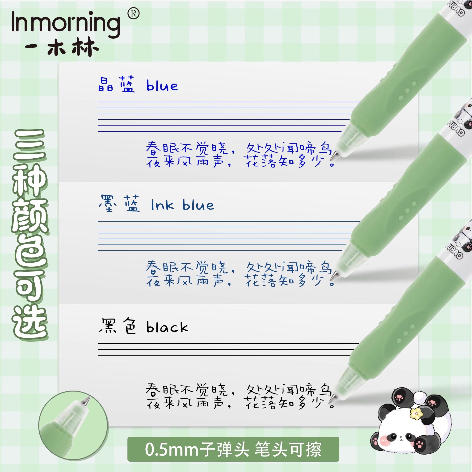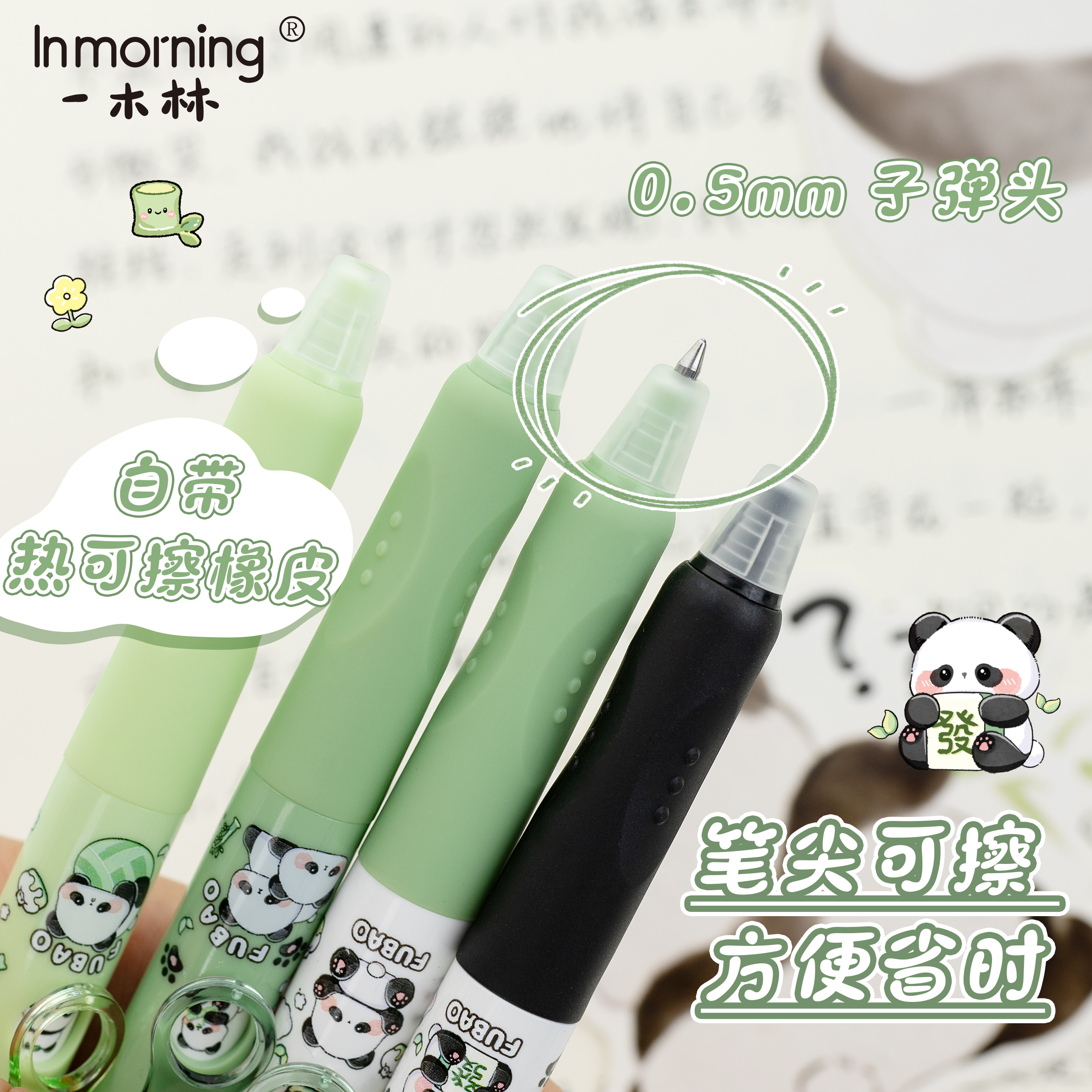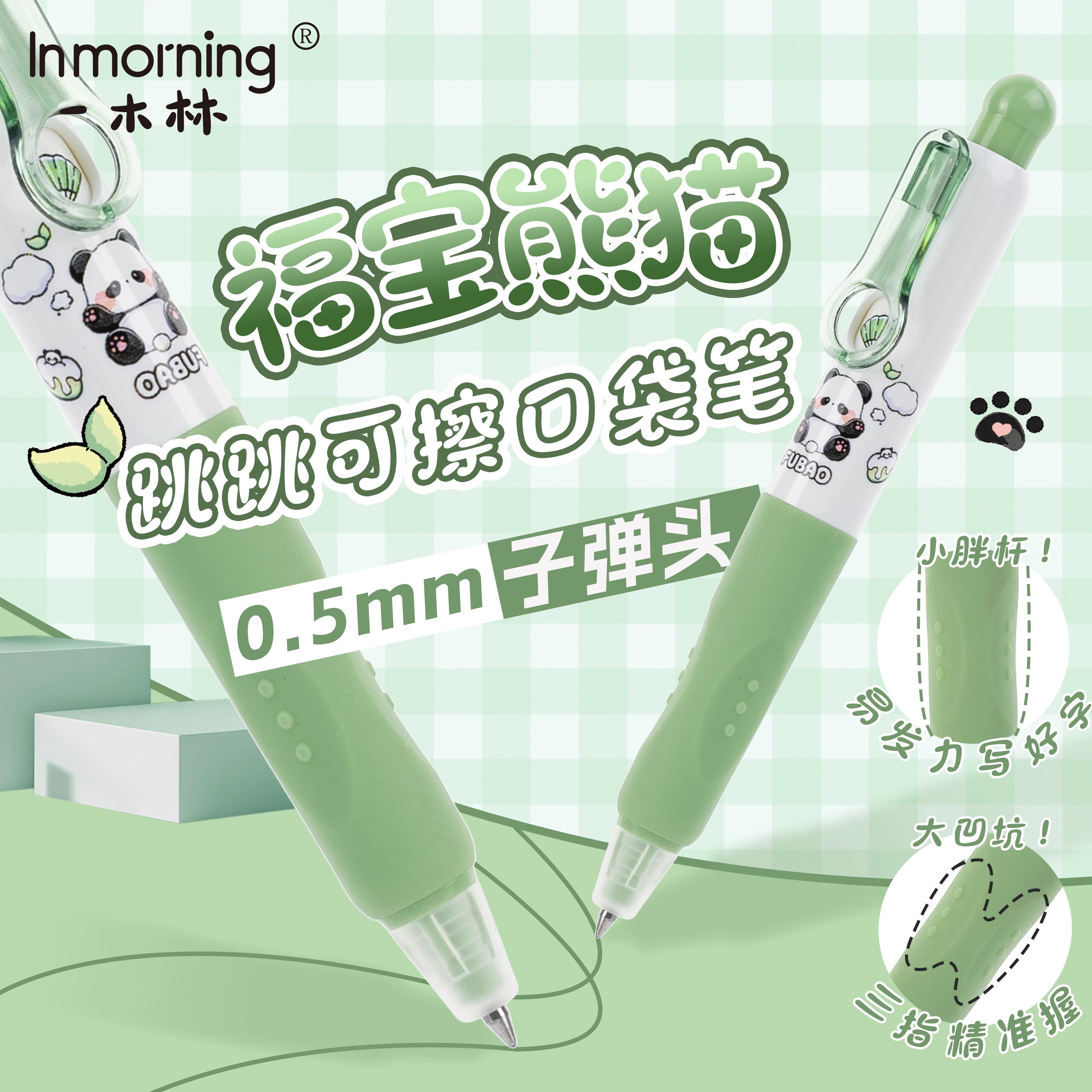 一木林熊猫跳跳可擦中性笔按动小学生专用晶蓝顺滑搞怪减压趣味笔