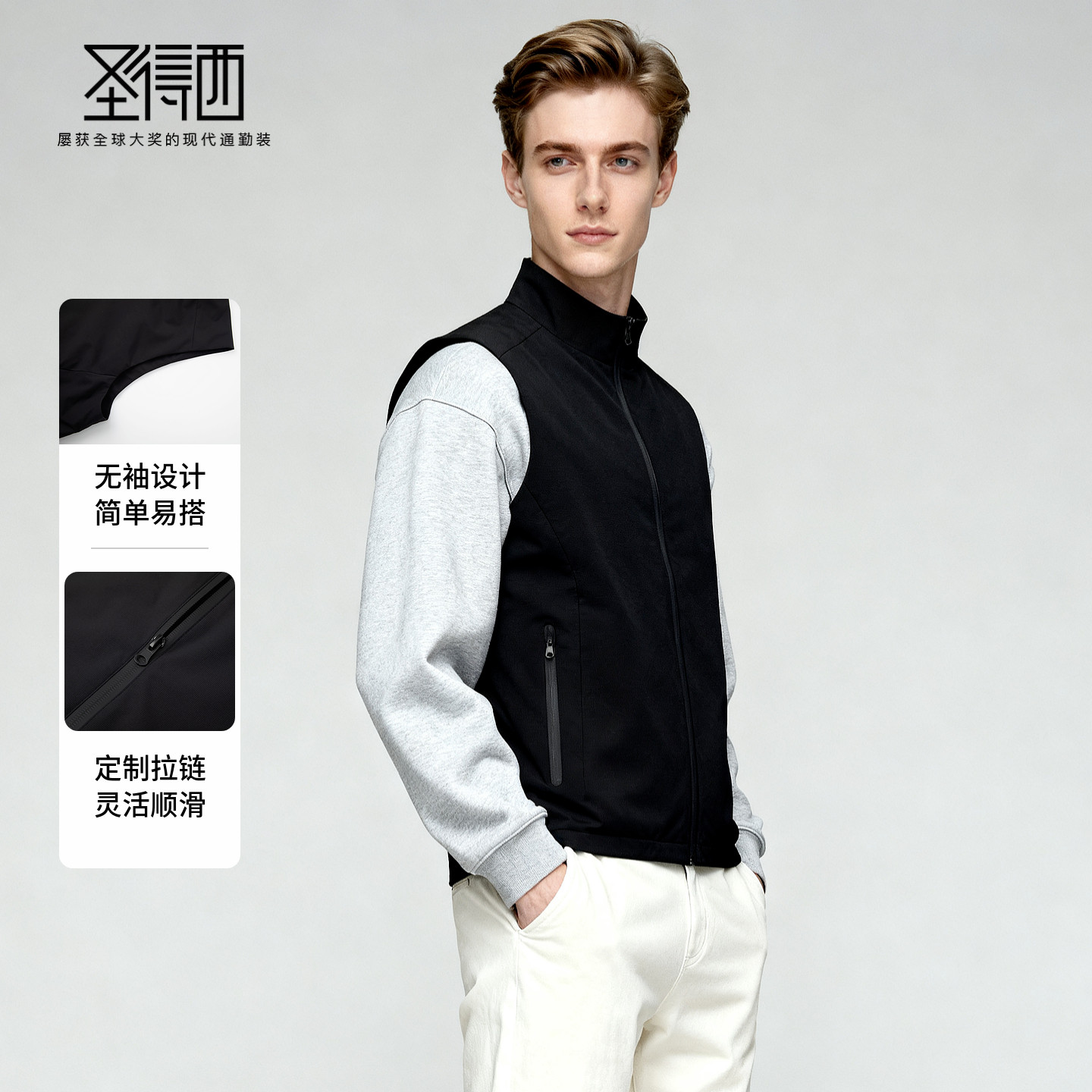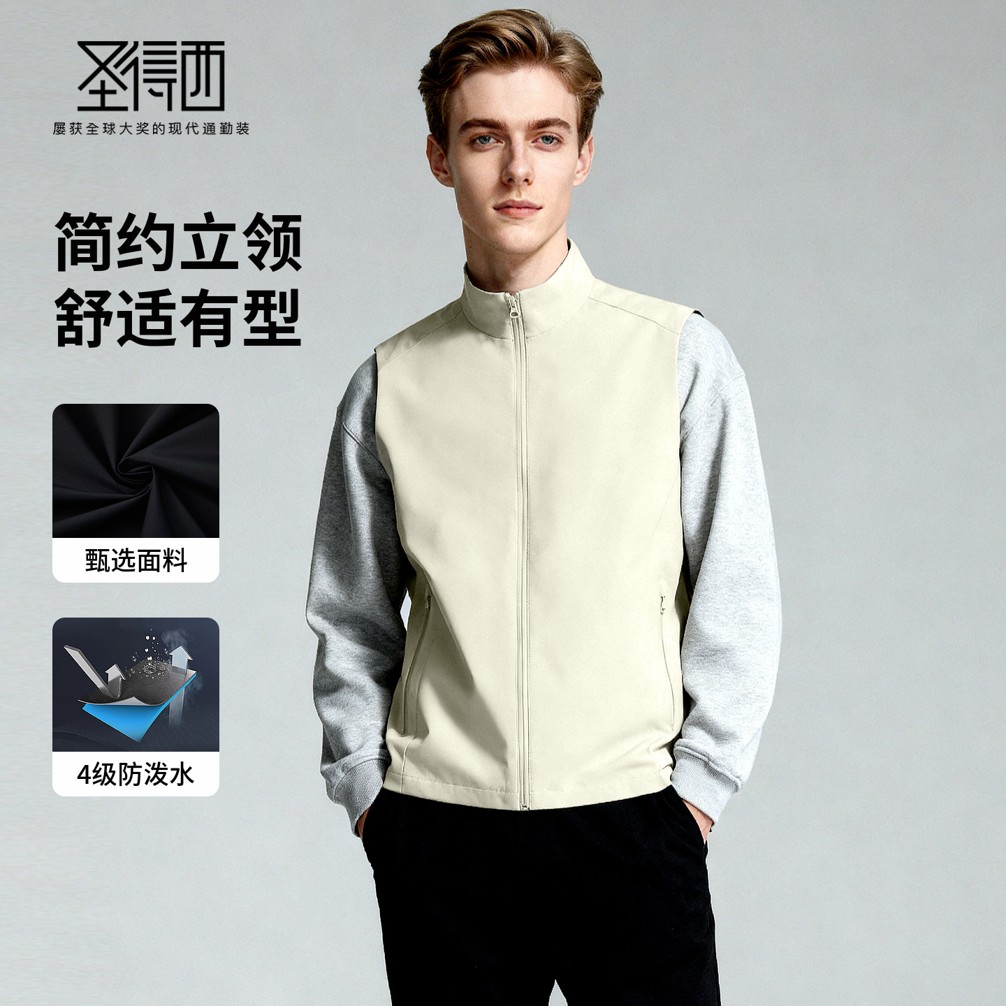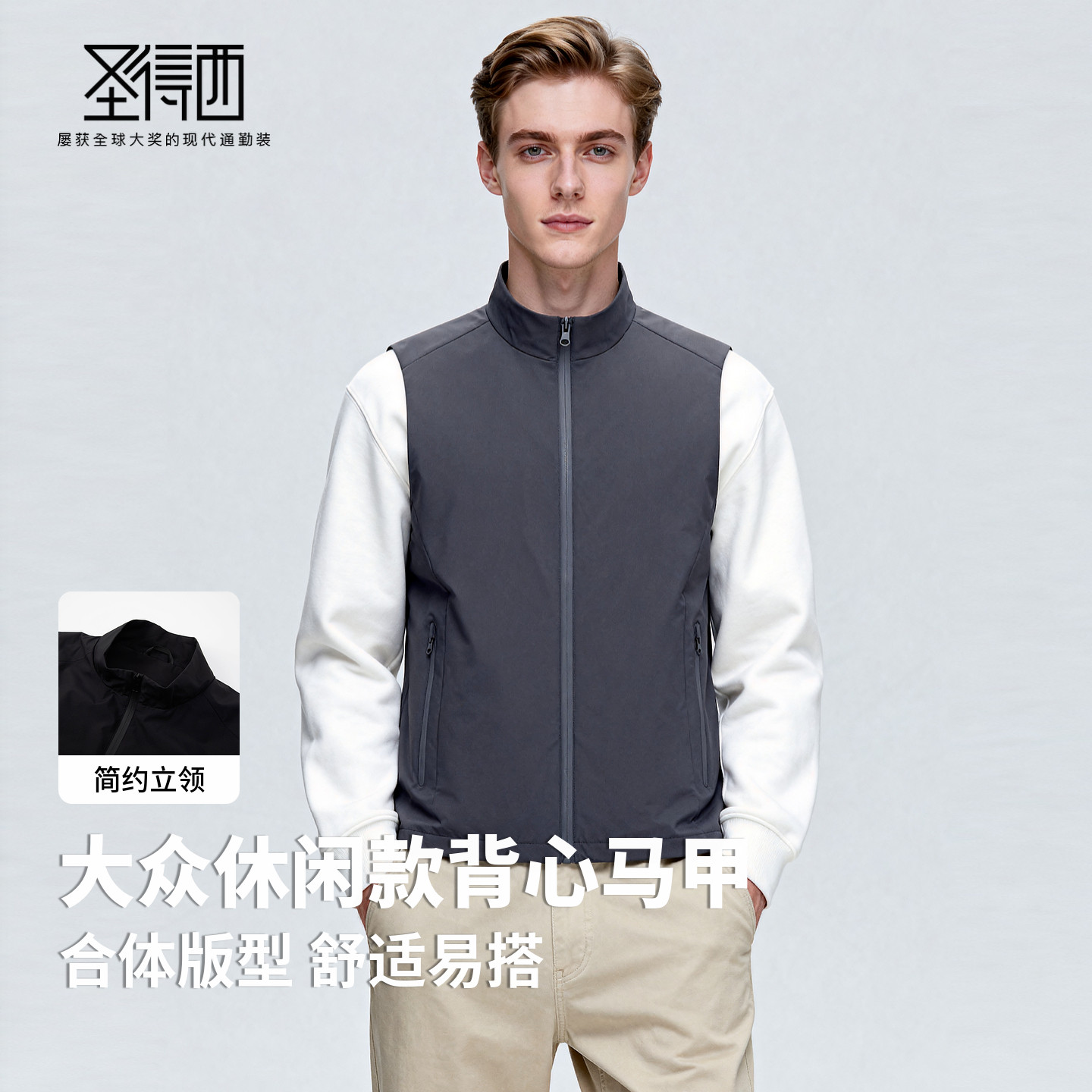 圣得西男士防泼水易打理马甲2026春季新款加绒爸爸户外无袖外套衣