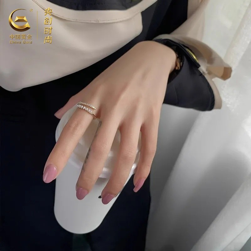 足银S999碎冰冰闭口戒指女轻奢高级感爆闪纯银指环情侣对戒尾戒