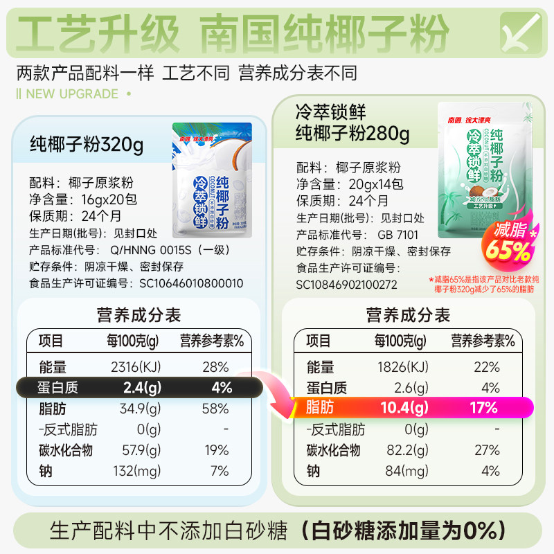 南国食品纯椰子粉320g冷萃海南特产椰奶无添加椰浆咖啡早餐冲饮