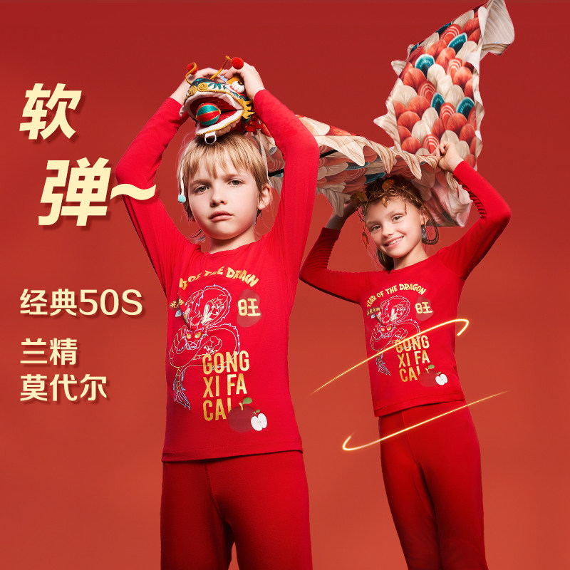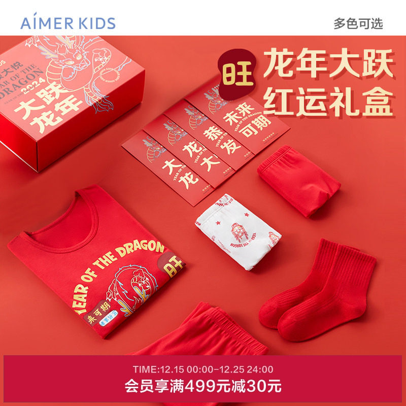 爱慕儿童保暖衣套装生肖龙红品男女秋衣裤内裤袜子送礼盒装A类