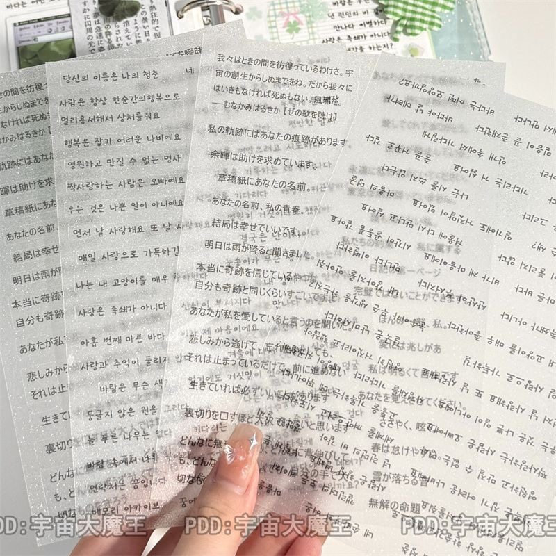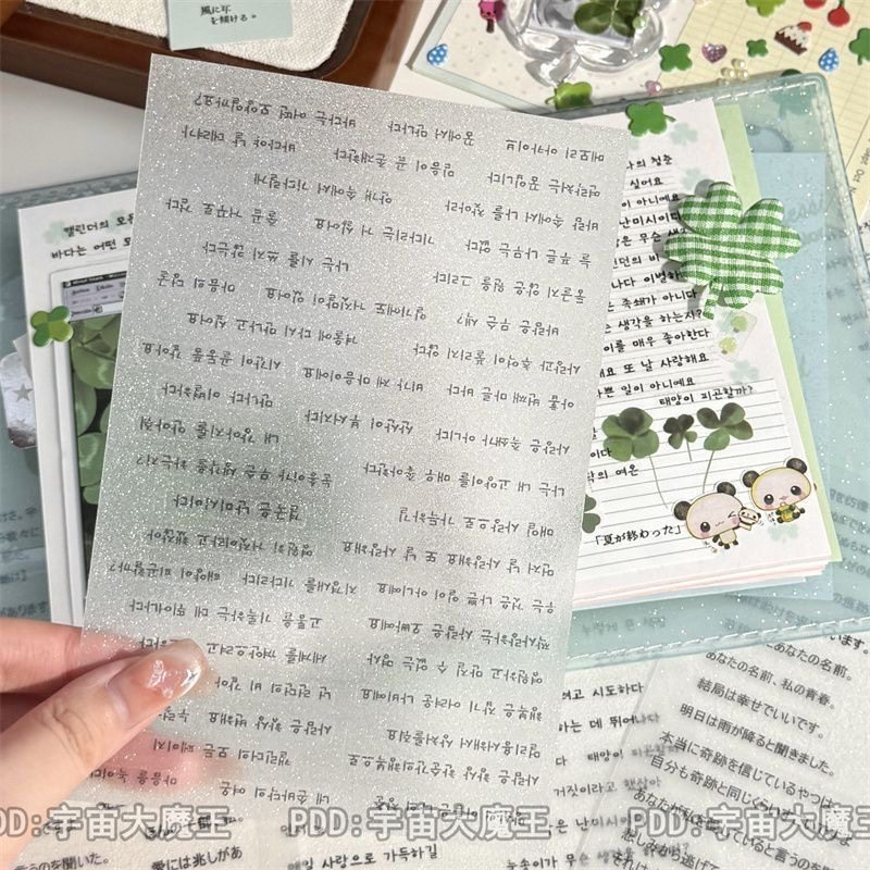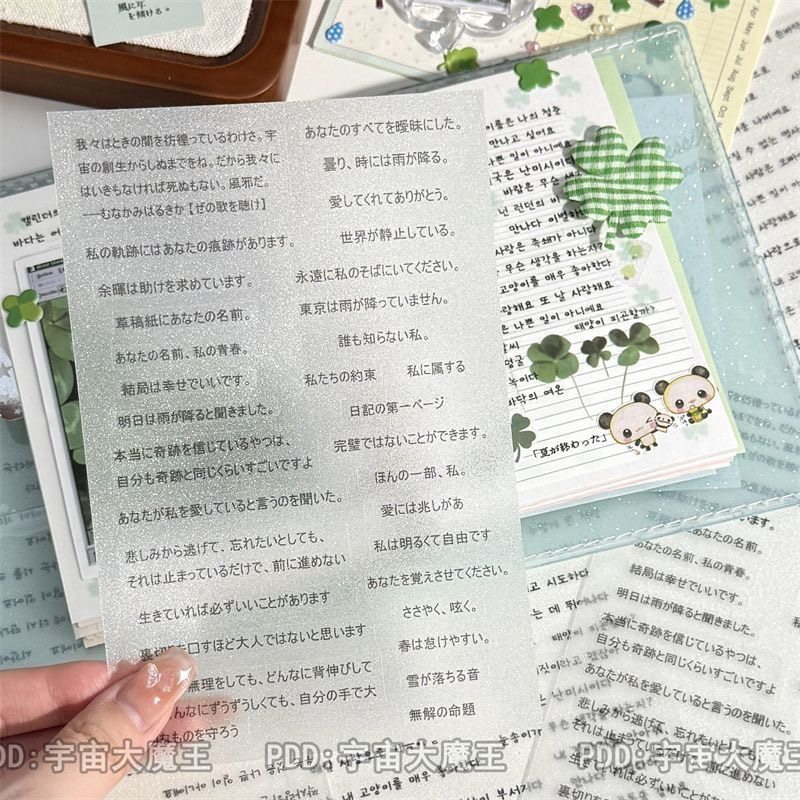 古早风文字双透闪砂切膜贴纸ins高颜值学生趣味手账diy创意素材贴