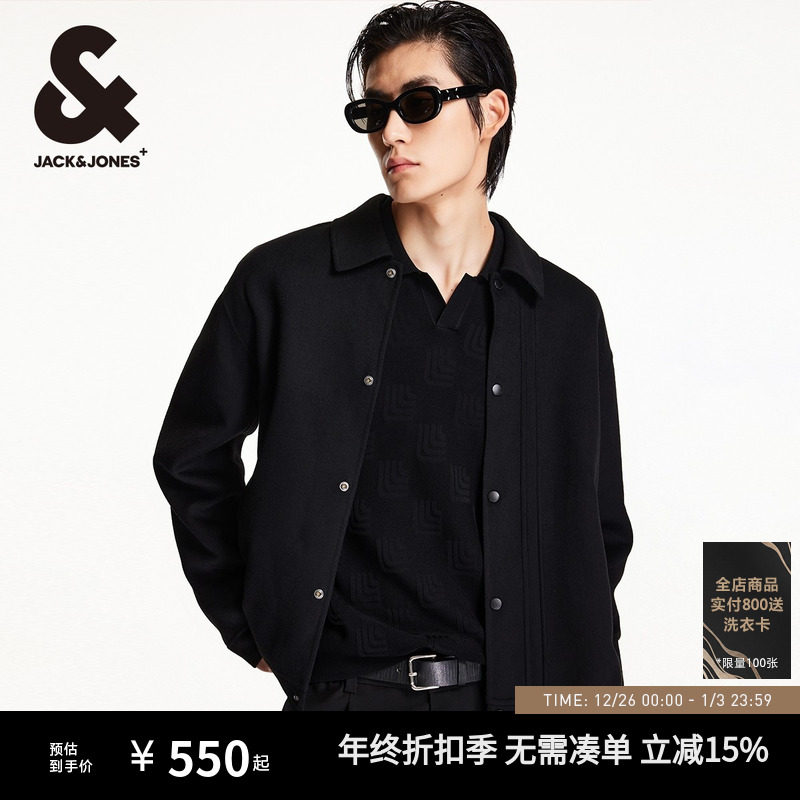 杰克琼斯男装秋冬毛呢大衣2025年新款纯色日常上衣外套225427007