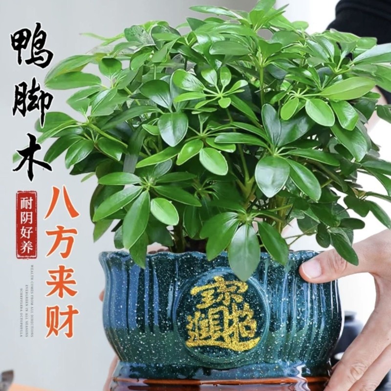 八方来财鸭脚木盆栽办公室内绿植四季常青花卉净化空气好养易客厅