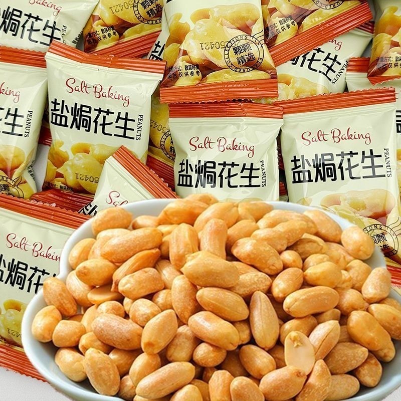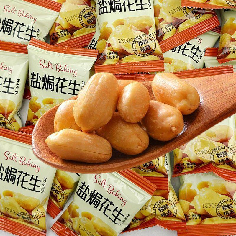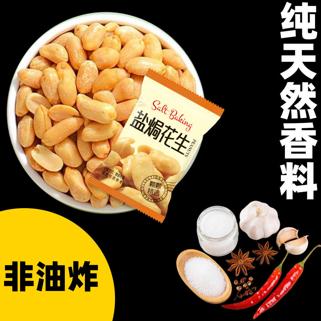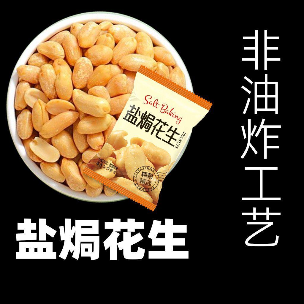 非油炸花生盐焗咸味花生米无壳去皮花生即食独立小包装下酒菜零食