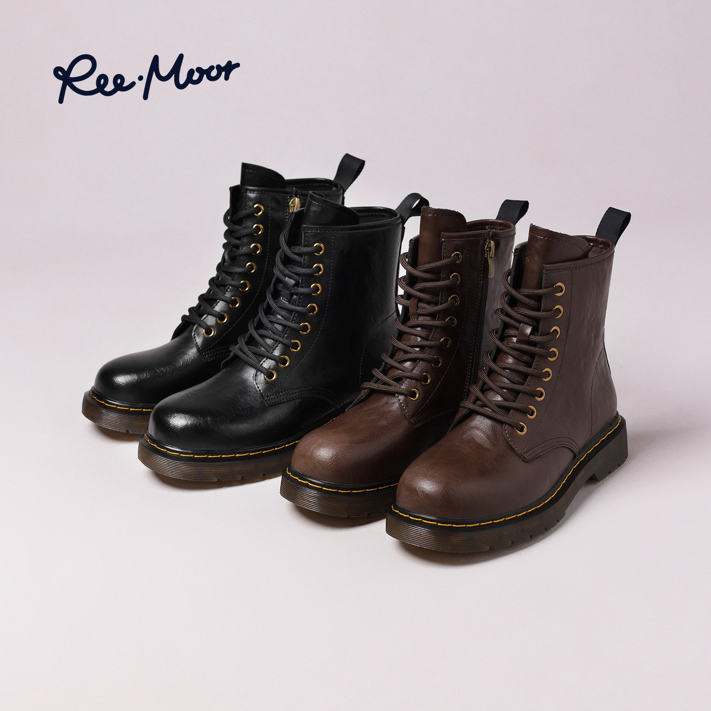 REEMOOR睿慕2025冬季新款英伦复古棕色马丁靴女厚底短靴机车靴女