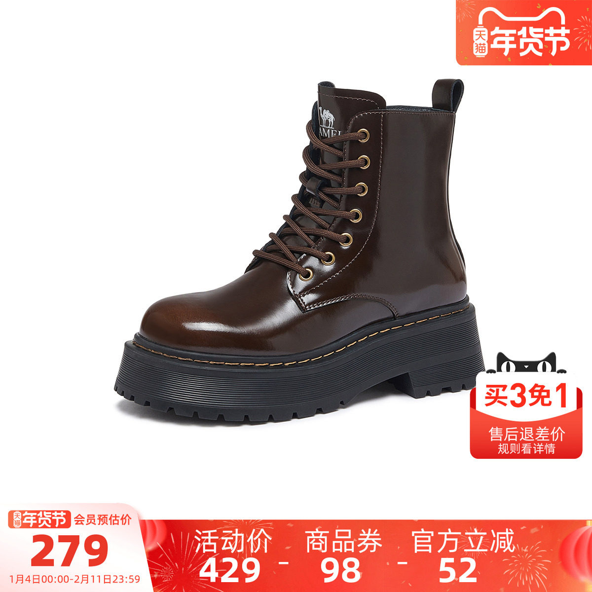骆驼女鞋2025夏季新款真皮休闲拉链短靴粗跟厚底百搭机车马丁靴女
