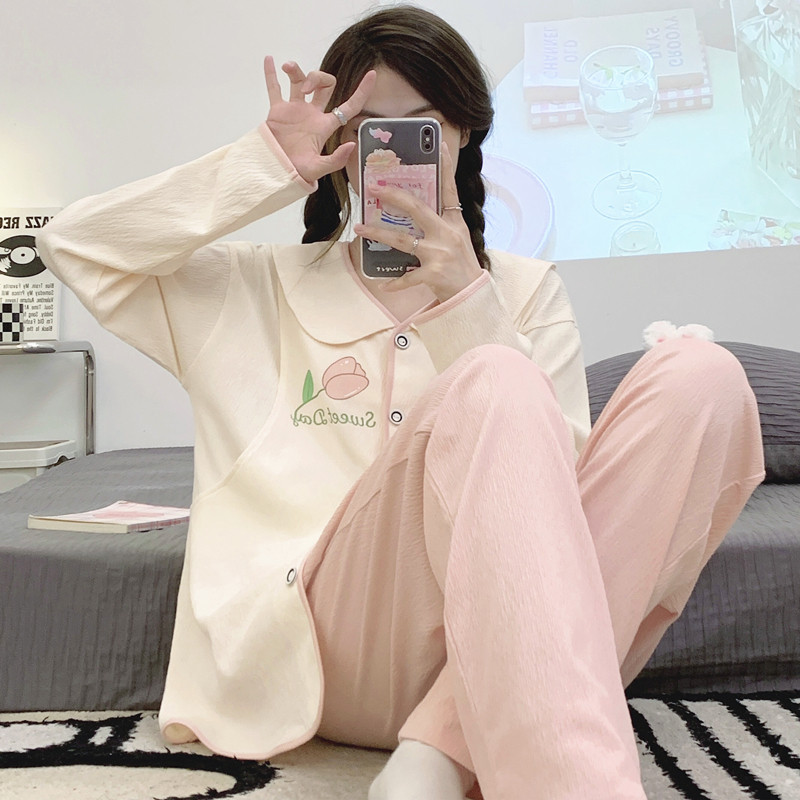月子服纯棉春秋冬季产后12月份孕妇睡衣可外穿喂奶产妇哺乳家居服