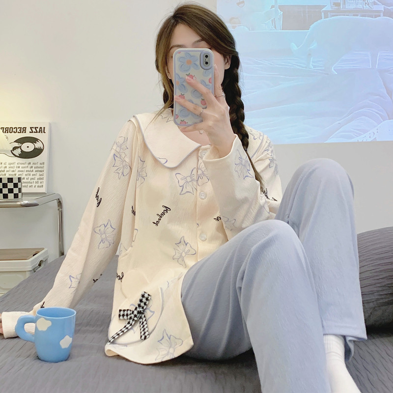 带胸垫奶香风纯棉月子服春秋季产后产妇孕妇睡衣秋冬款哺乳喂奶衣
