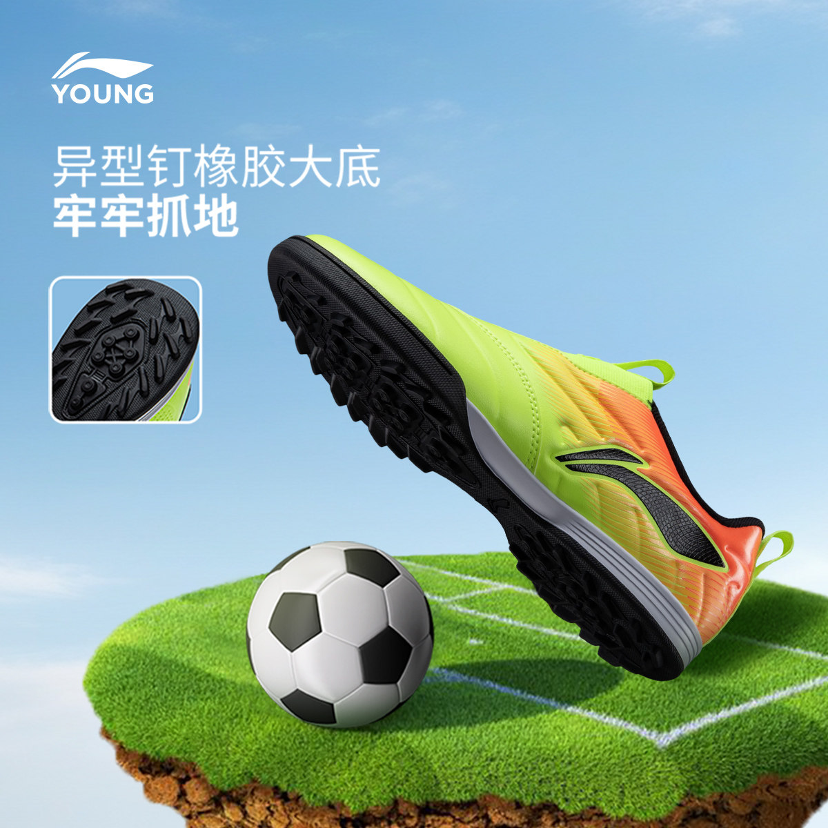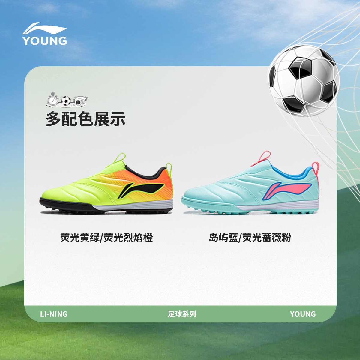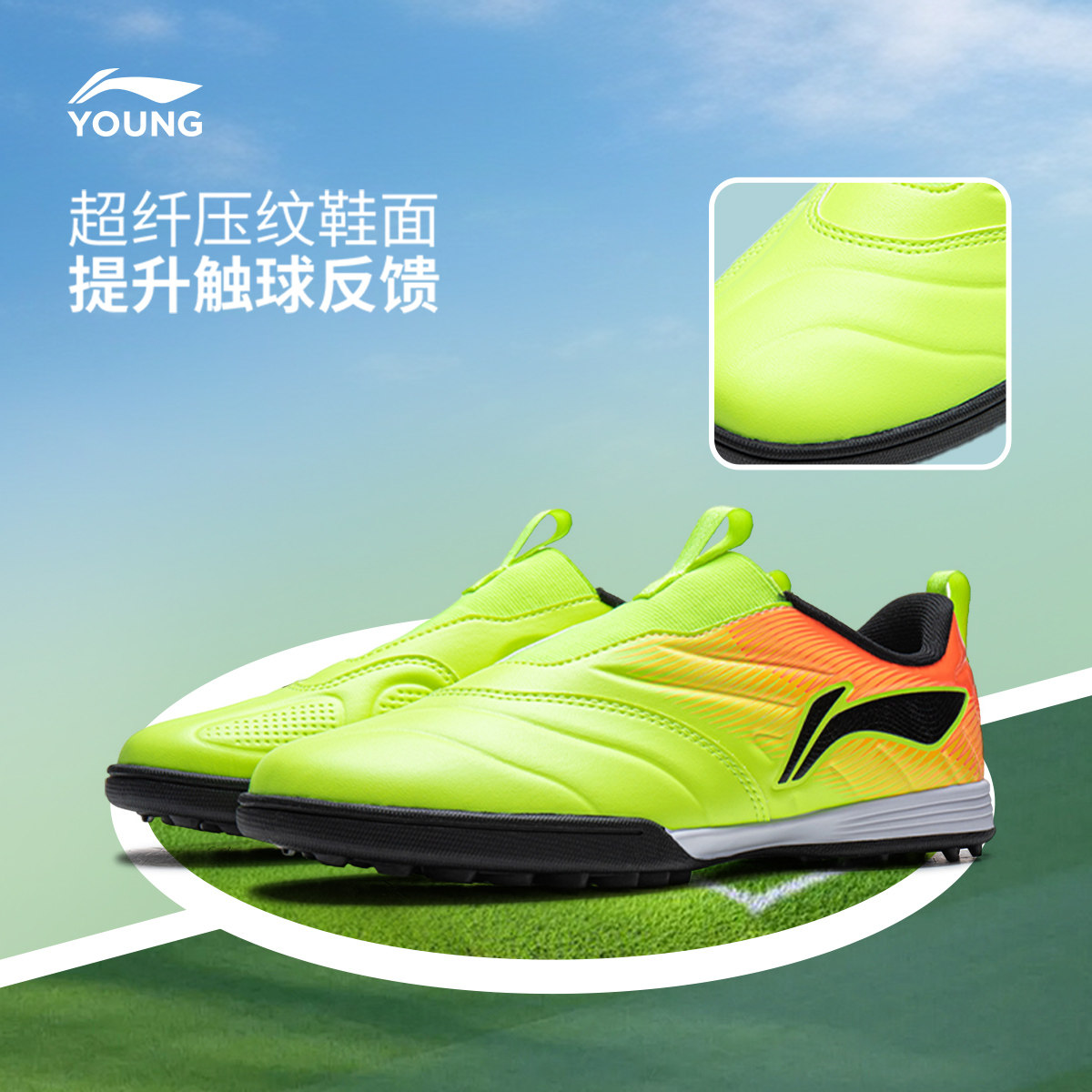 李宁儿童专业碎钉足球鞋一脚蹬锦2.5TF学生比赛训练运动鞋YKGW004