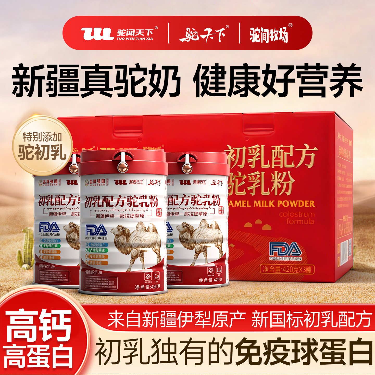 驼闻天下驼奶粉新疆正品伊犁初乳配方益生菌中老年高钙骆驼乳粉