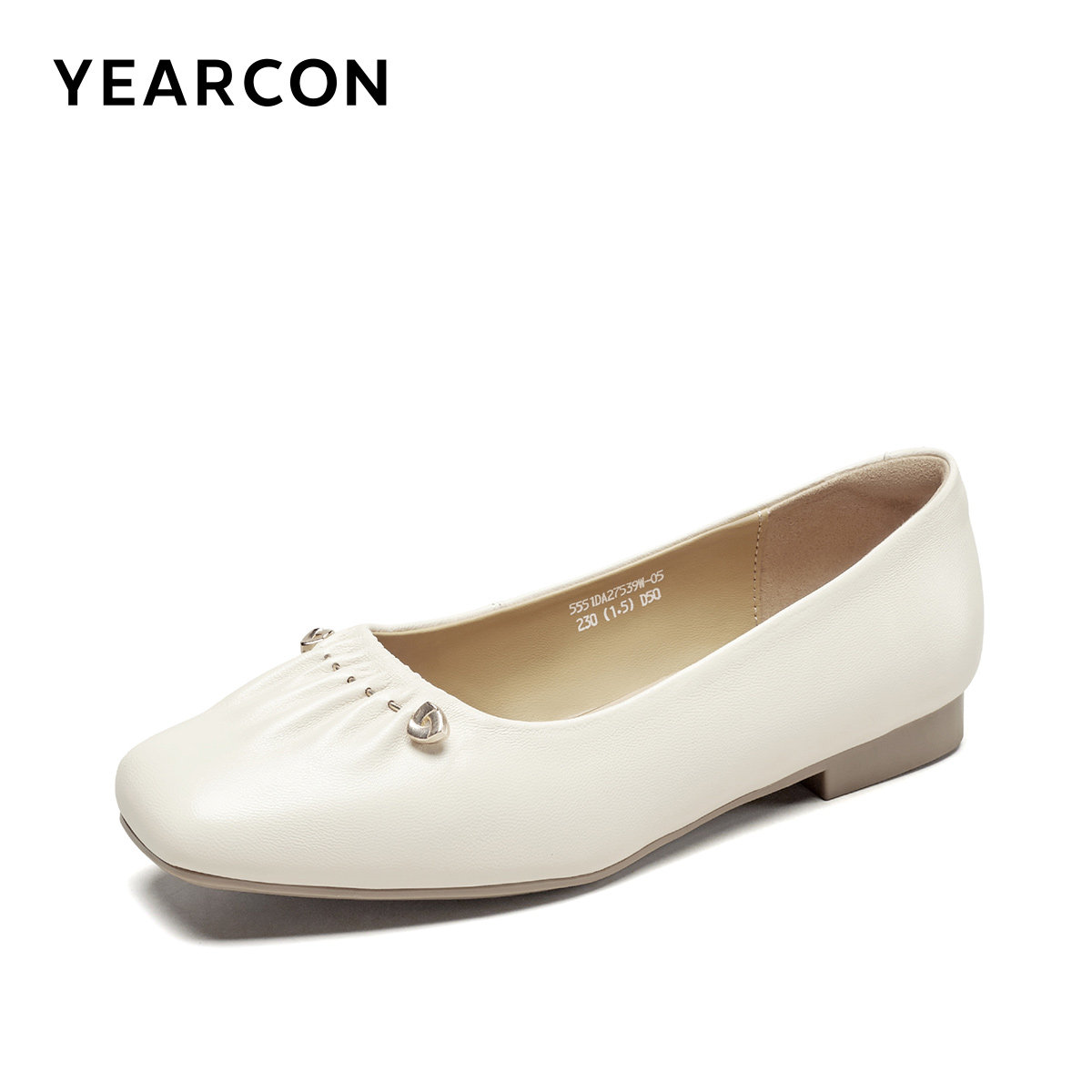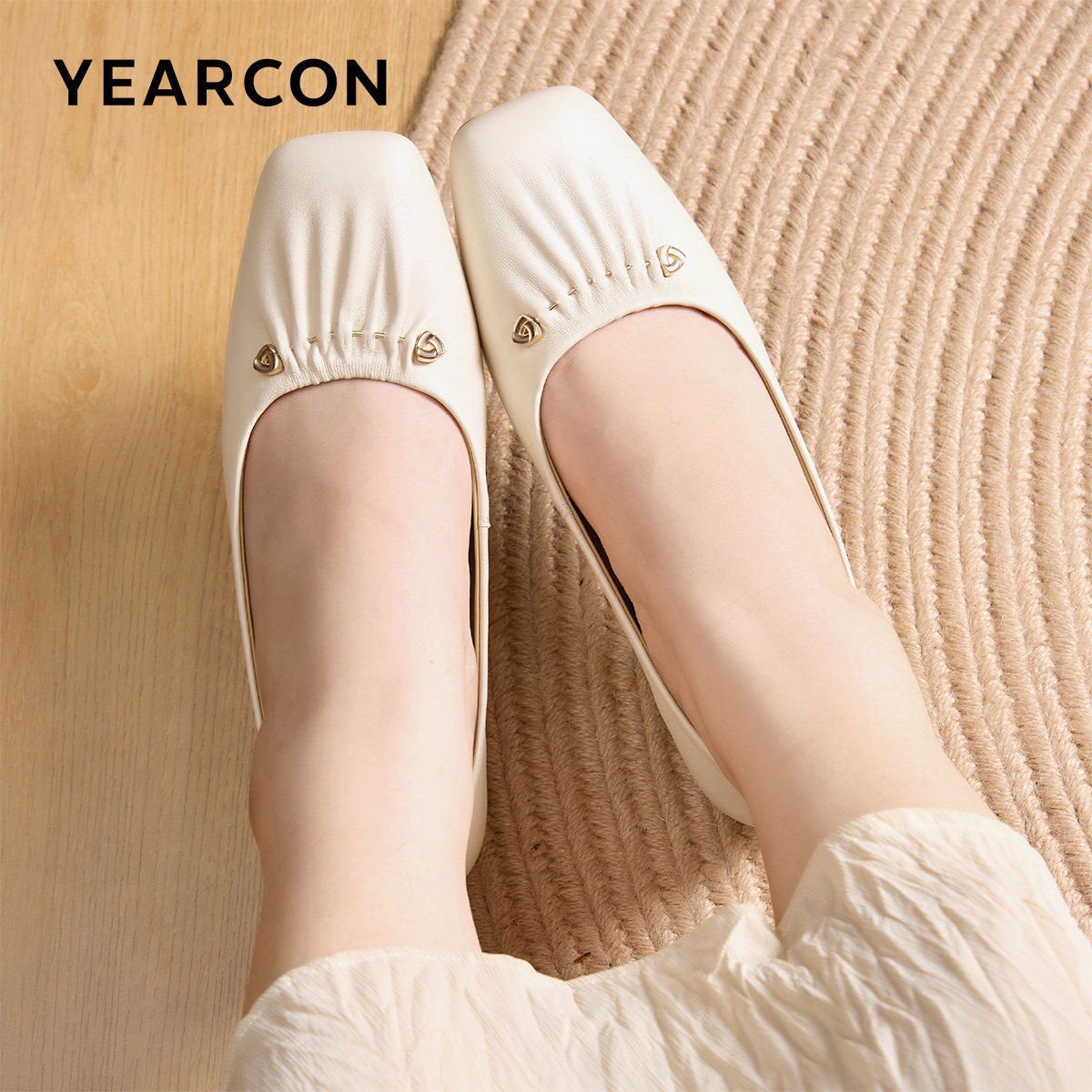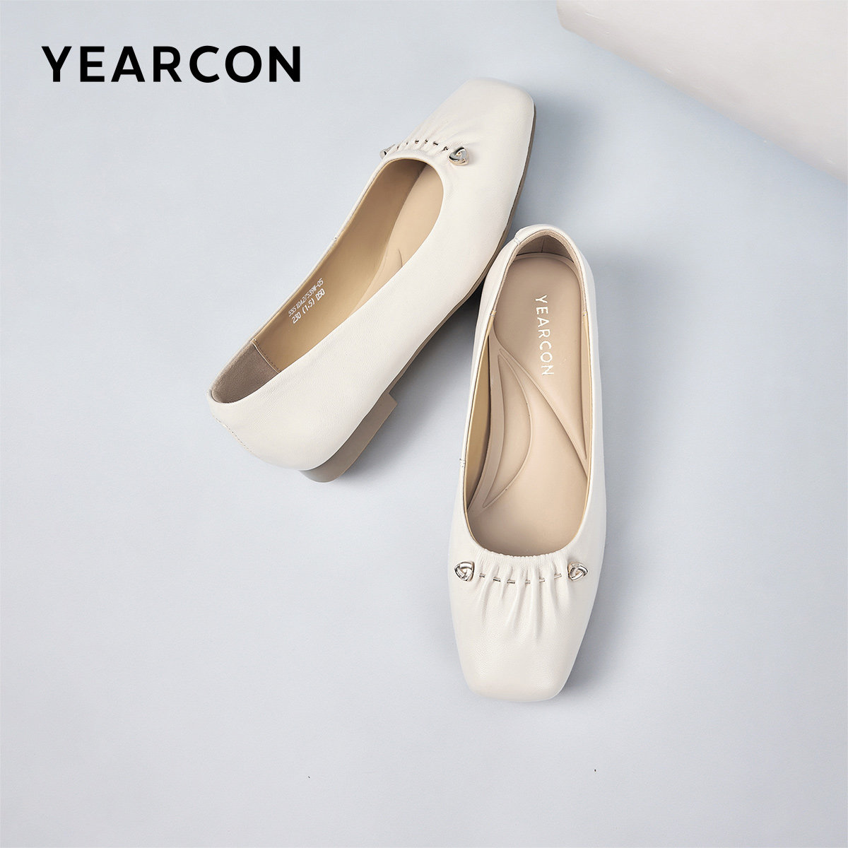 意尔康女鞋2025秋季大码粗跟单鞋方头羊皮通勤工作皮鞋法式配裙子