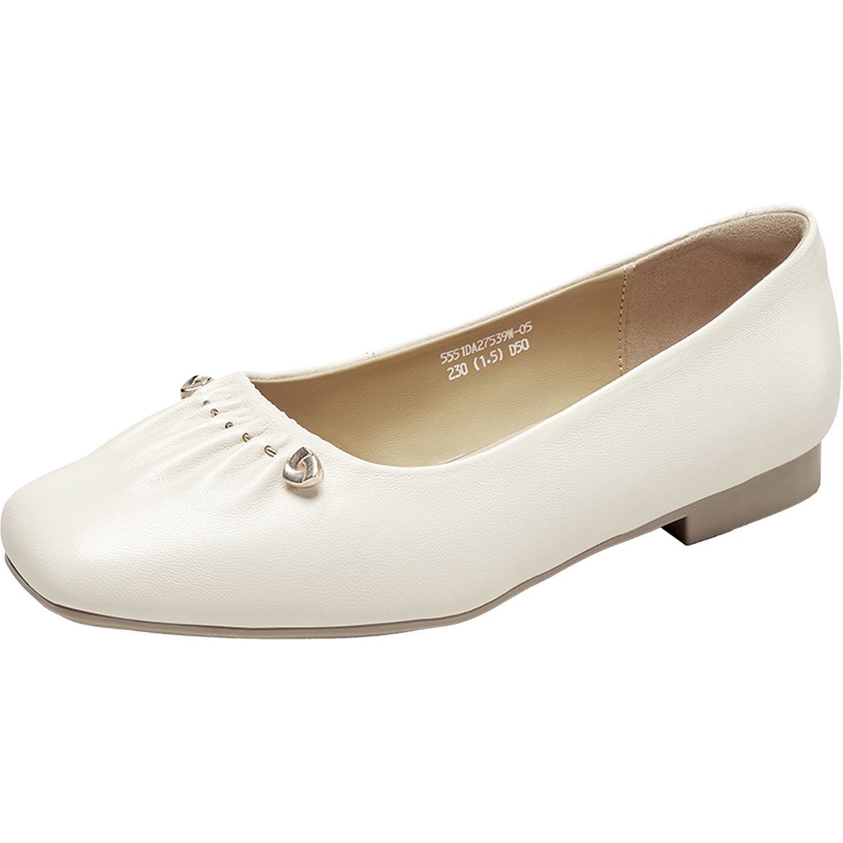 米霏!真皮~尖头铆钉平底单鞋女秋冬浅口内增高软底瓢鞋大码女鞋