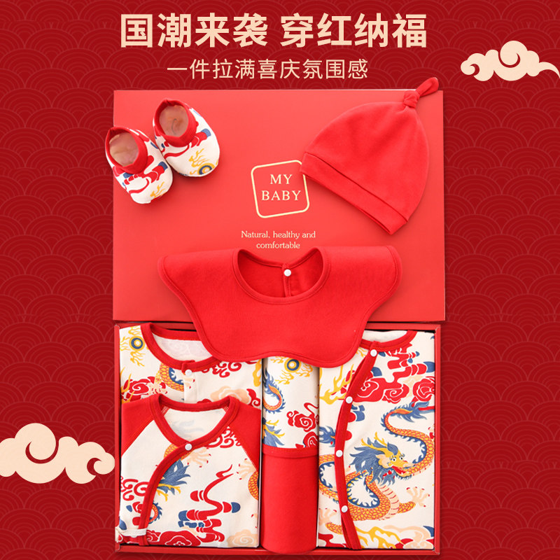 新生儿婴儿礼盒秋冬连体衣礼物满月送礼衣服红色宝宝过年拜年服