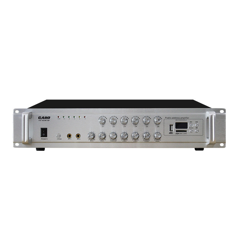 公共广播系统 450W定压USB/SD/FM功放带遥控器 六分区功放机