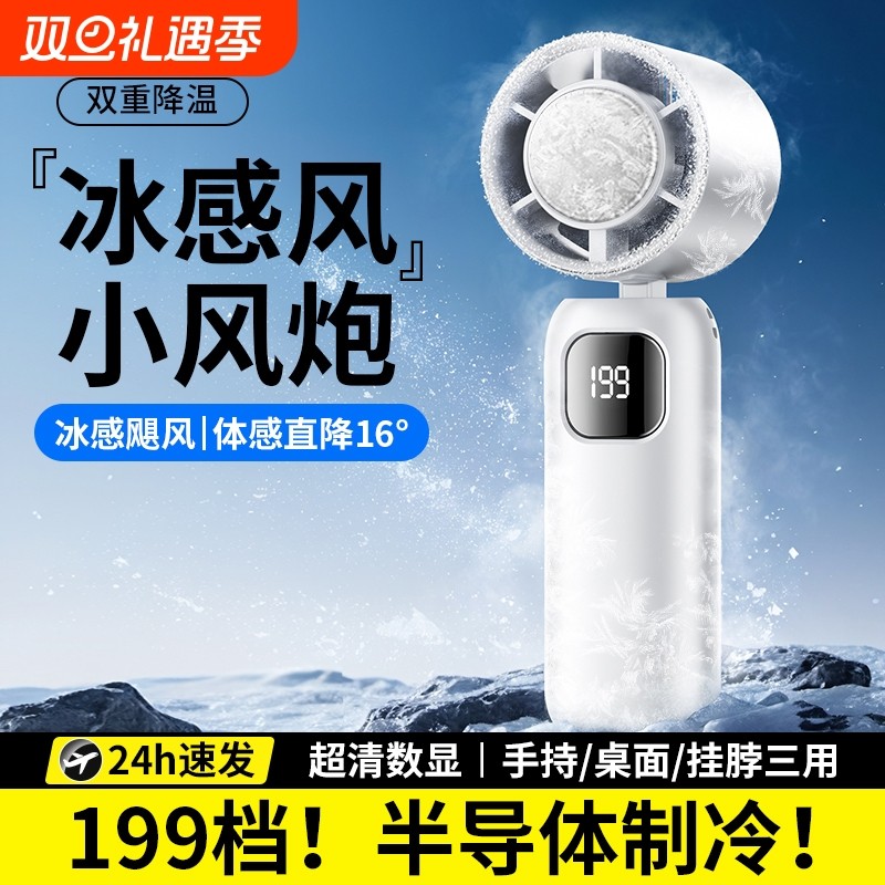 制冷手持小风扇2025年新款静音办公室桌面usb充电暴力涡轮空调扇学生户外便携式随身小型超长续航挂脖电风扇f
