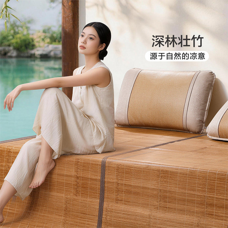富安娜高端天然凉席竹席子冰丝双面可用凉席子2025新款夏季草席