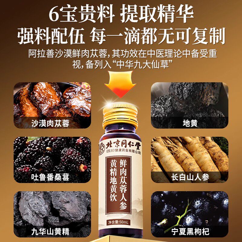 北京同仁堂的鲜肉地黄饮苁蓉人参黄精补回男士透支肾养生饮品身体