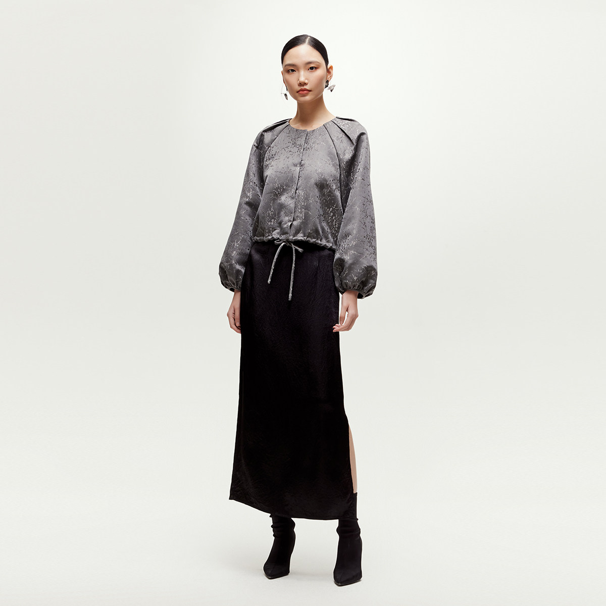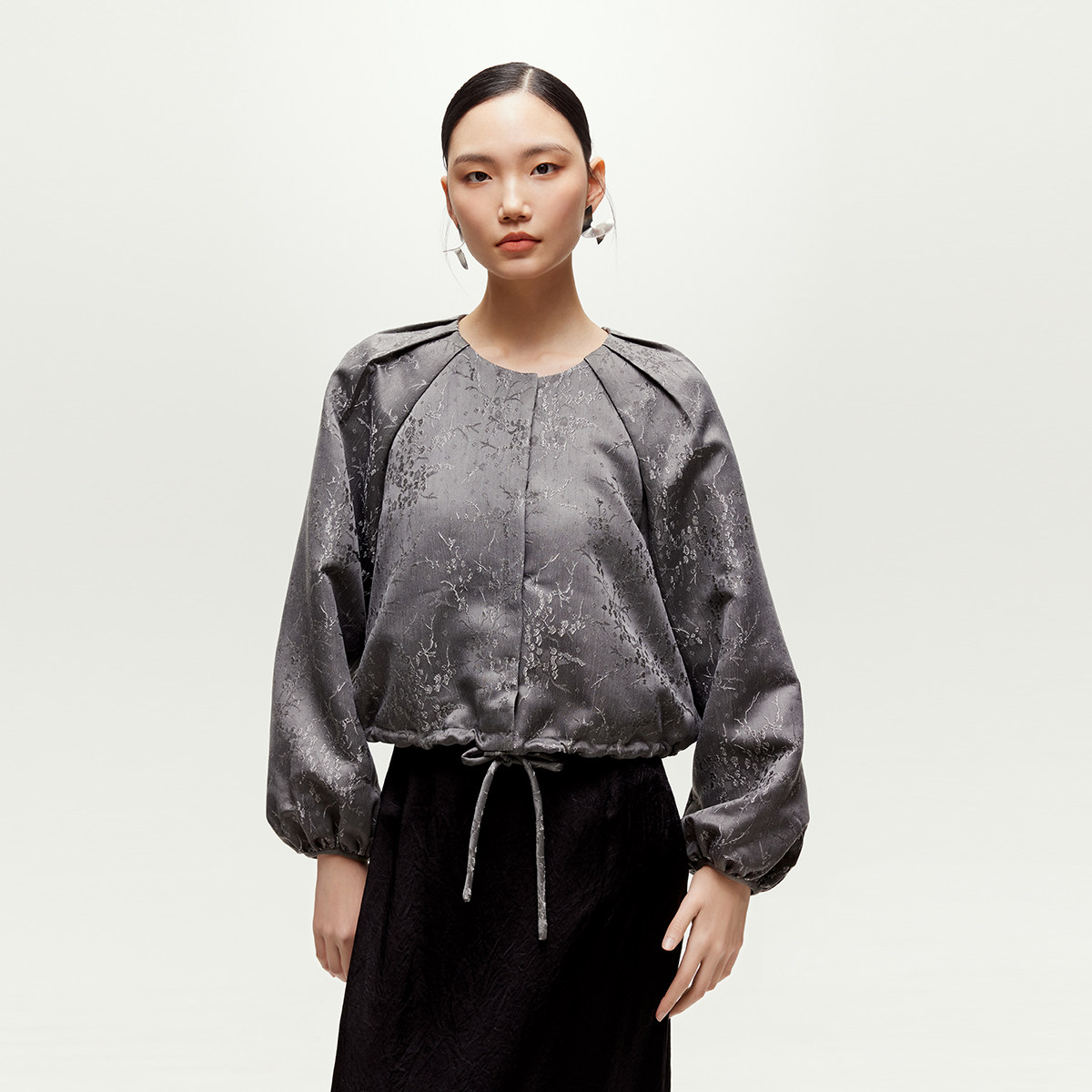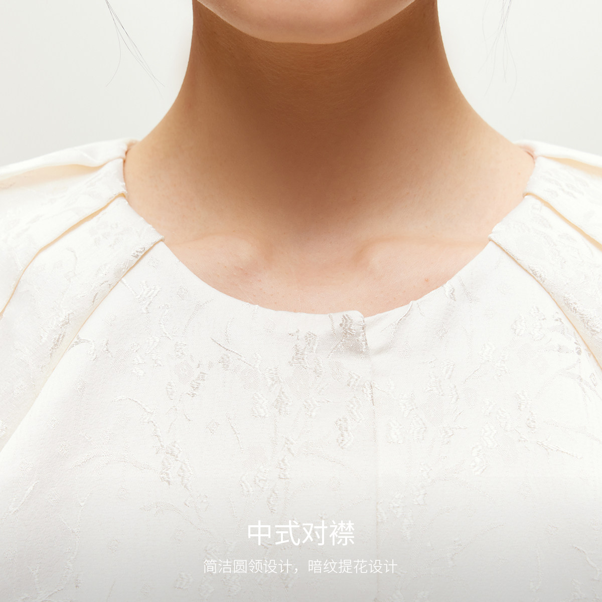 中式宽松廓形;中式对襟,简洁圆领