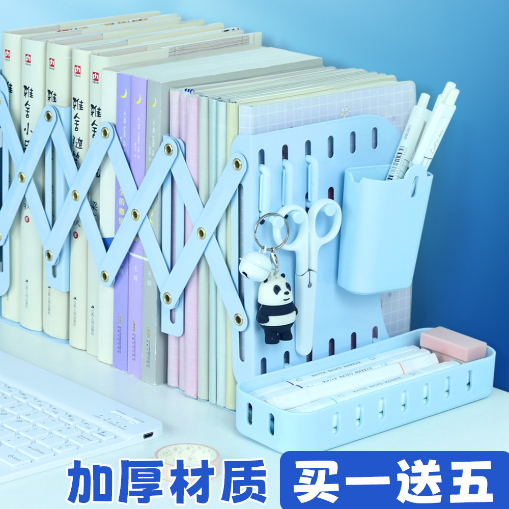 洞洞可伸缩书立架收纳盒笔筒挂钩桌面置物架多功能书立隔板大容量