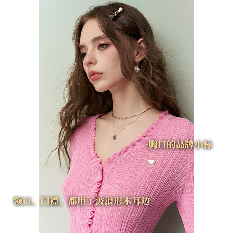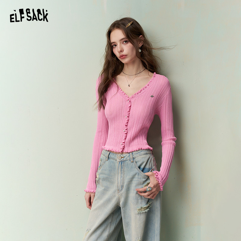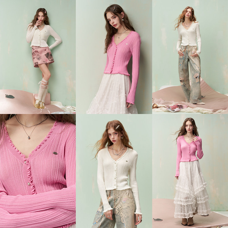 妖精的口袋甜美白色v领针织开衫女2026早春新款修身气质绝美上衣