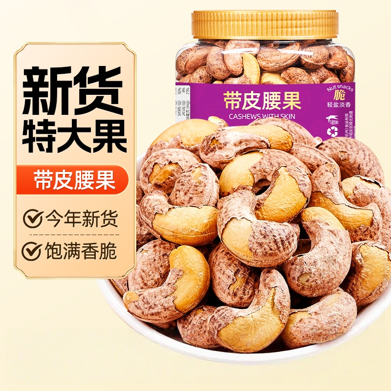 2025年新货带皮腰果500g原味盐焗大颗粒罐装紫衣紫皮干果坚果零食