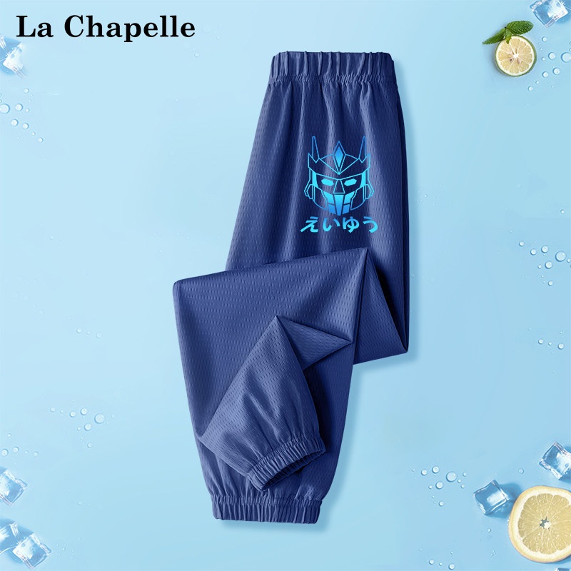 拉夏贝尔男童网眼防蚊裤2026新款儿童透气运动长裤中大童凉感裤子
