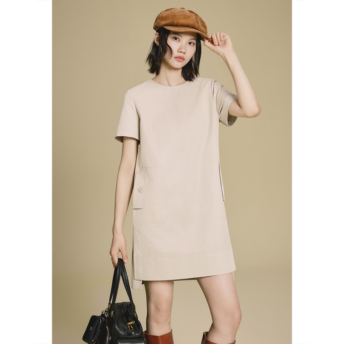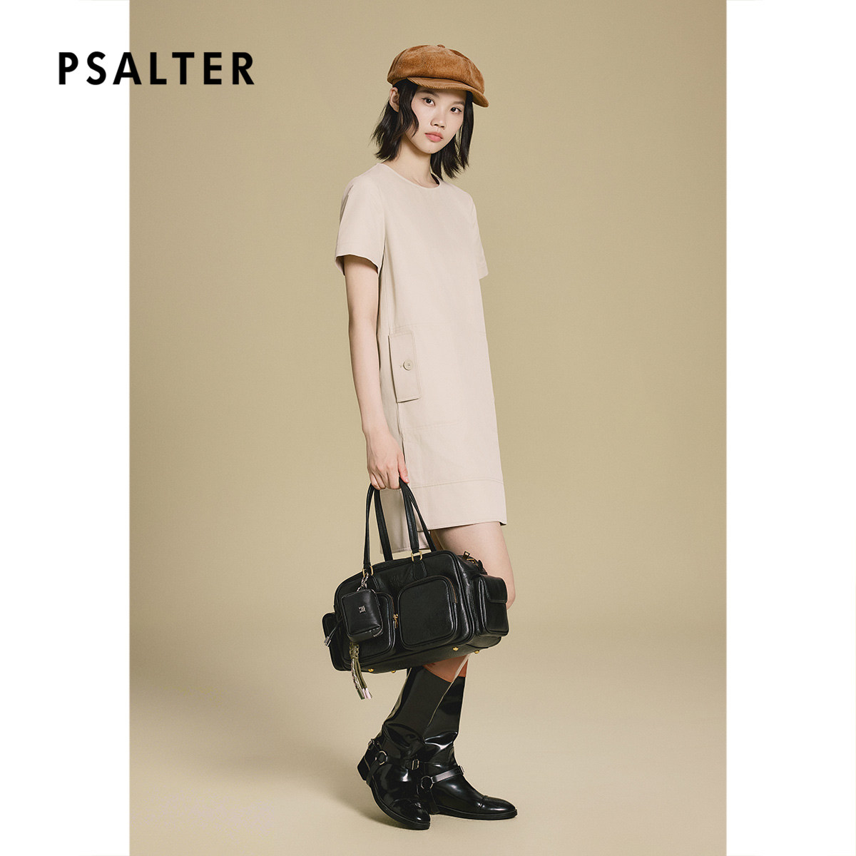 PSALTER诗篇风衣面料开衩下摆H型连衣裙2025秋款
