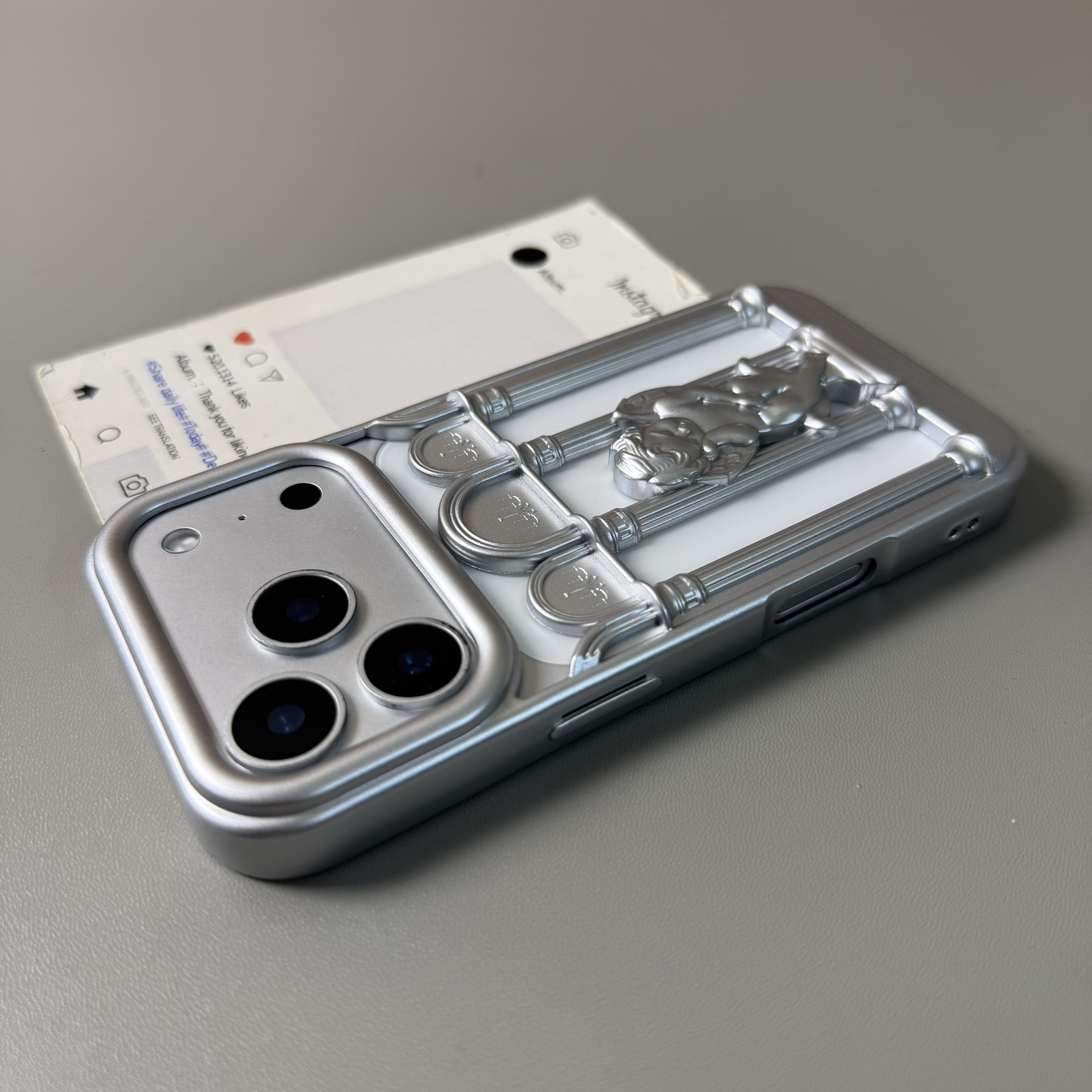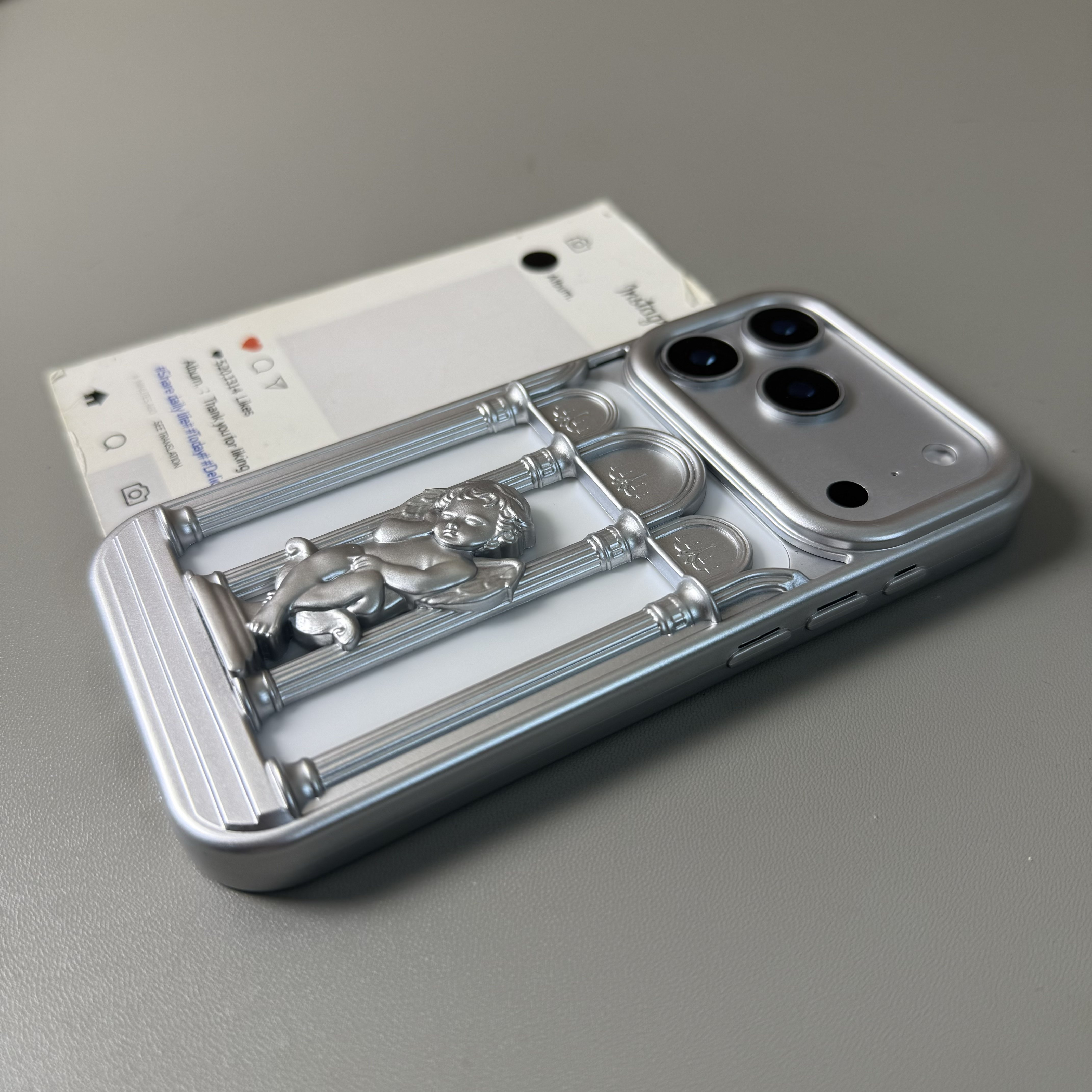 银灰色祈祷天使镂空散热壳适用iPhone17手机壳16promax苹果15/14/13欧美风软壳