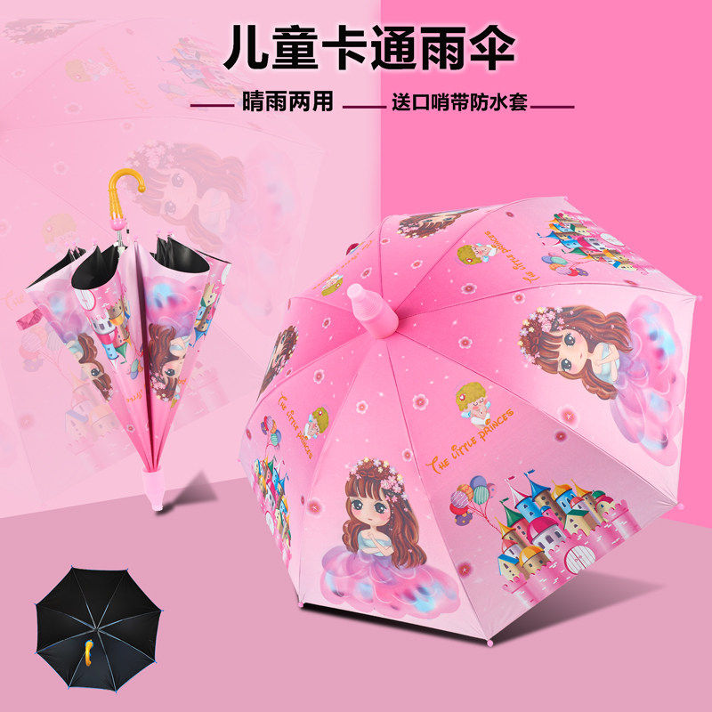 奥te曼儿童半自动黑胶防晒超轻便晴雨伞防水套男女学生公主长柄伞