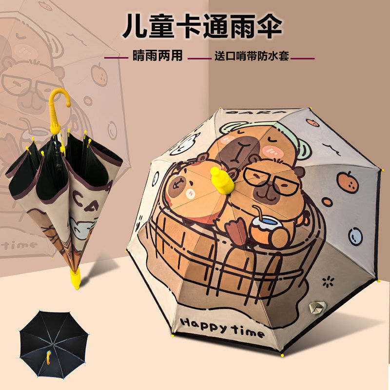 儿童雨伞卡皮巴拉卡通幼儿园小学生上学专用黑胶晴雨两用太阳伞