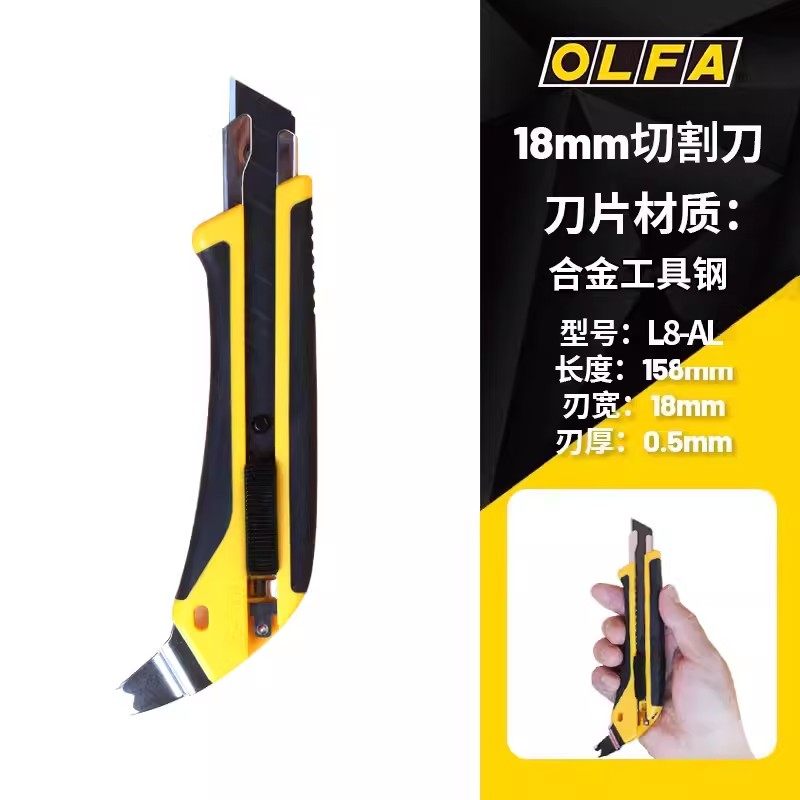 日本OLFA爱利华L8-AL美工刀尾部M形爪尾翼壁纸裁纸墙纸刀加厚刀架