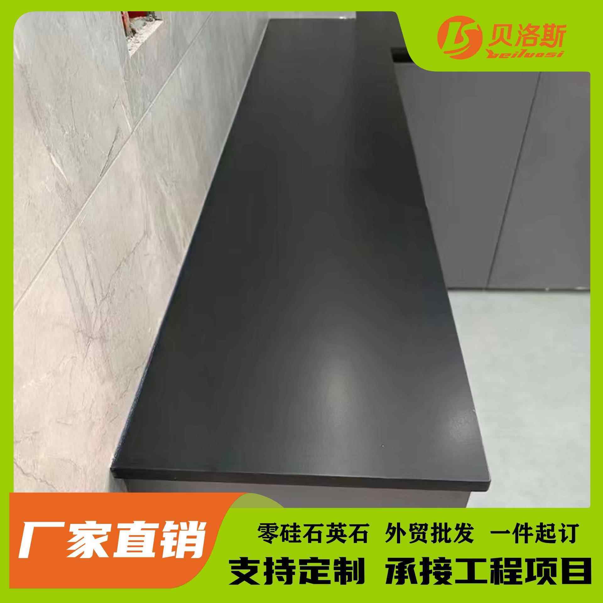 纯黑色成品台面人造石英石飘窗橱柜烘培吧台厨房台面大理石石材