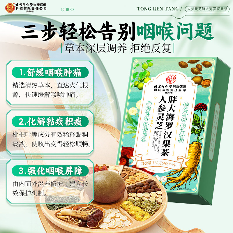北京同仁堂胖大海罗汉果雪梨咽炎养生茶清肺化痰止咳润喉官方正品
