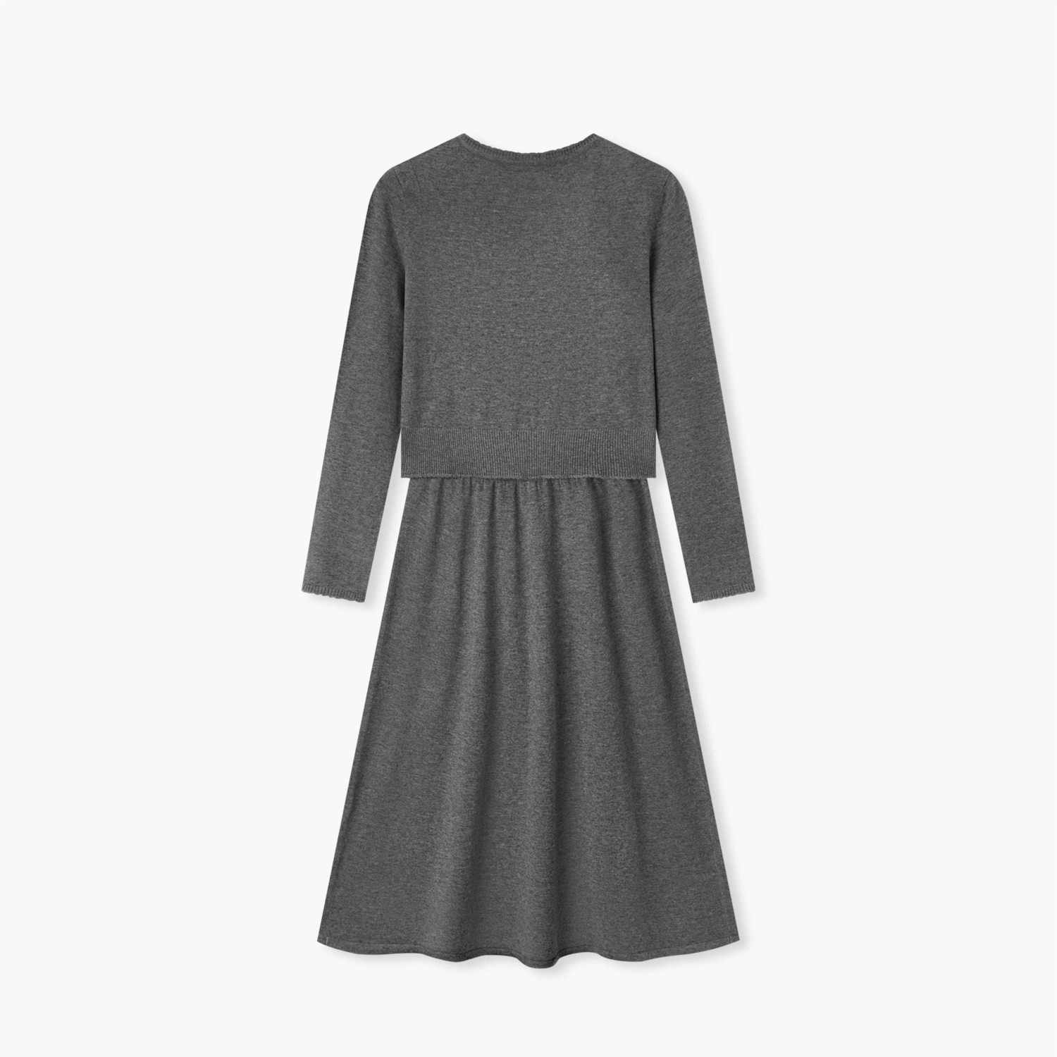 爱居兔高级灰套装连衣裙女春秋新款经典格雷系针织衫裙两件套