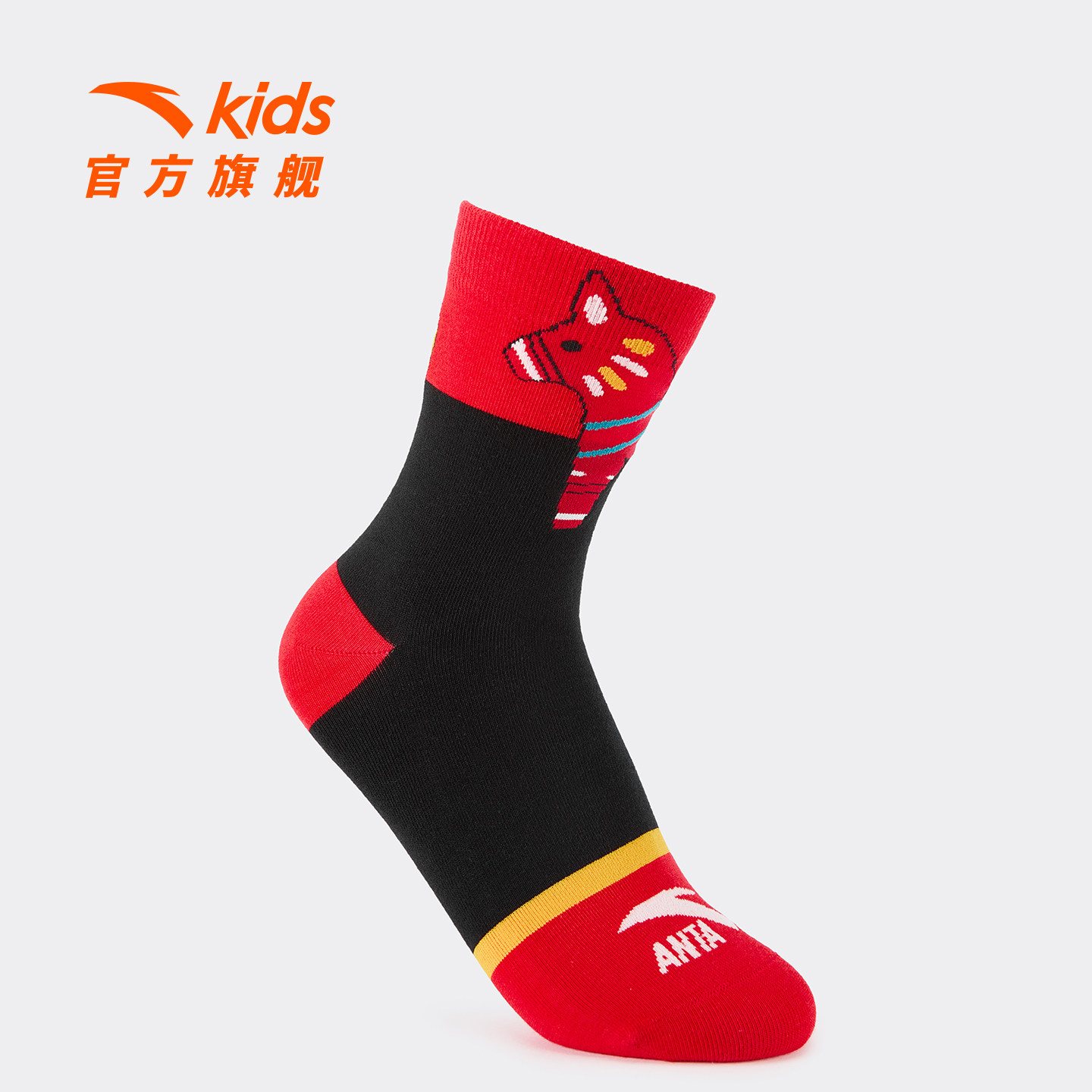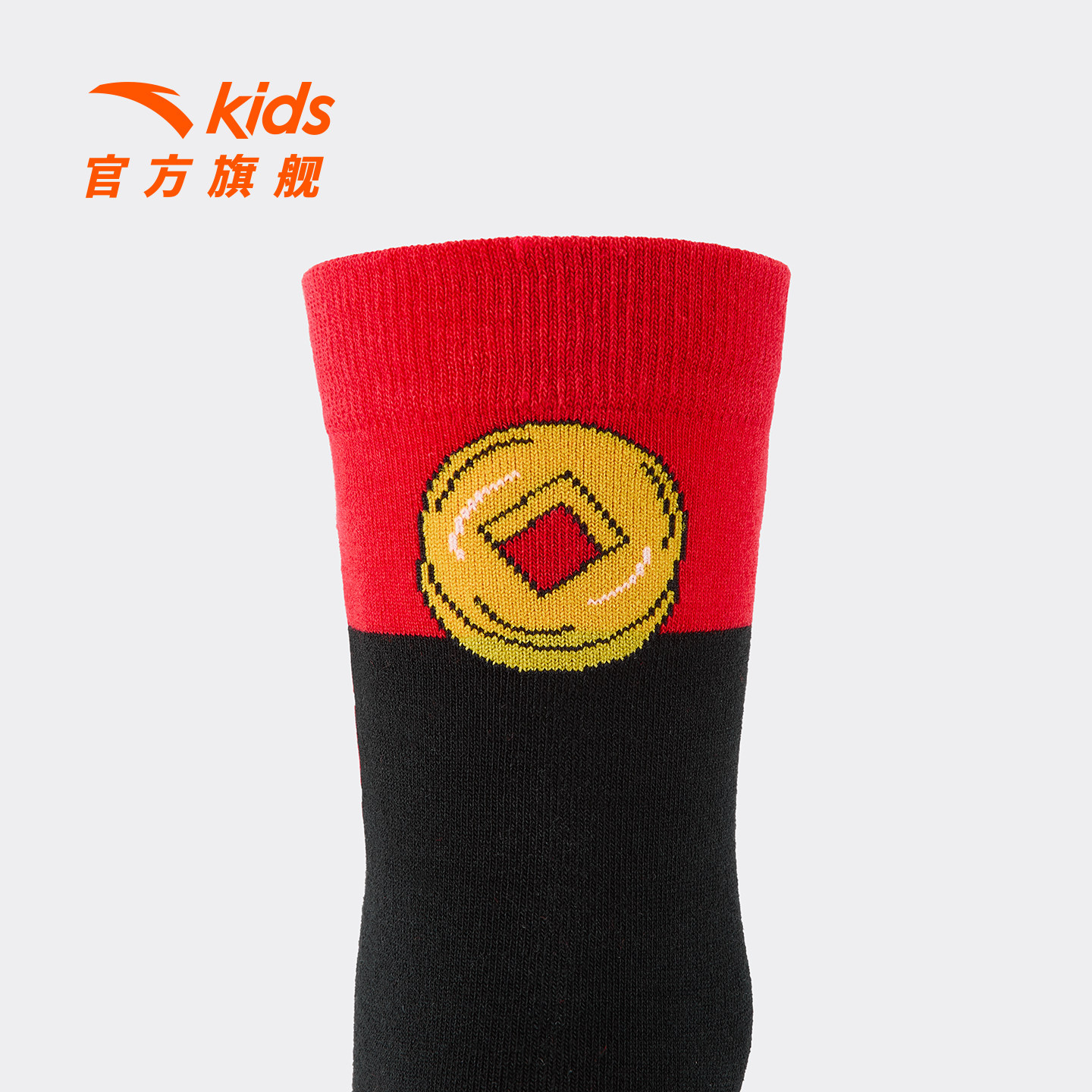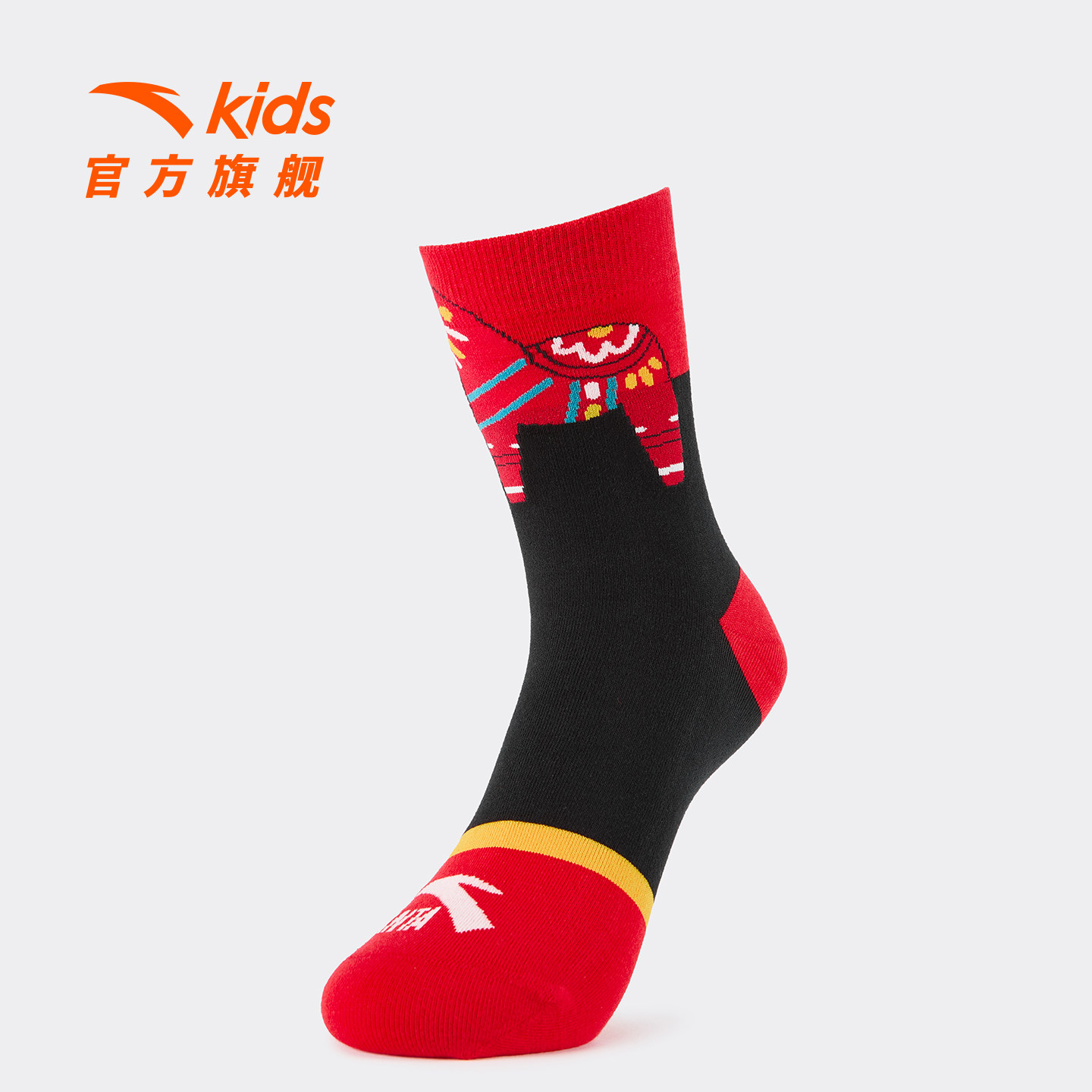 商场同款安踏儿童新年红色袜子2026款精梳棉抗菌长袜男童袜子女童