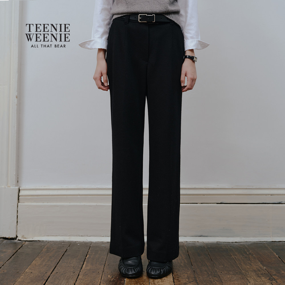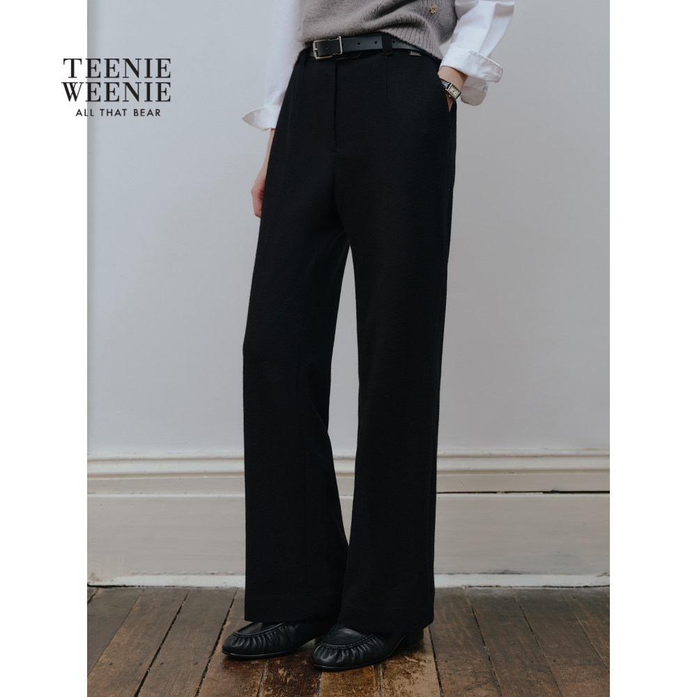 TeenieWeenie小熊女装休闲裤2025冬新款舒适休闲宽松高腰直筒长裤