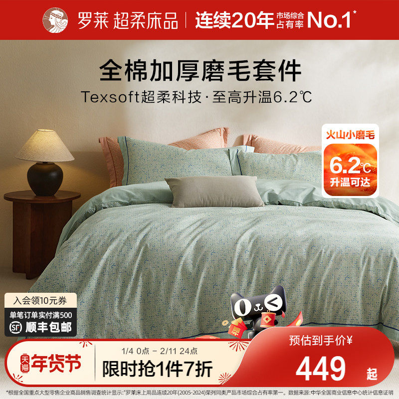 罗莱家纺床上用品学生宿舍磨毛纯棉全棉加厚床单被套宿舍三四件套
