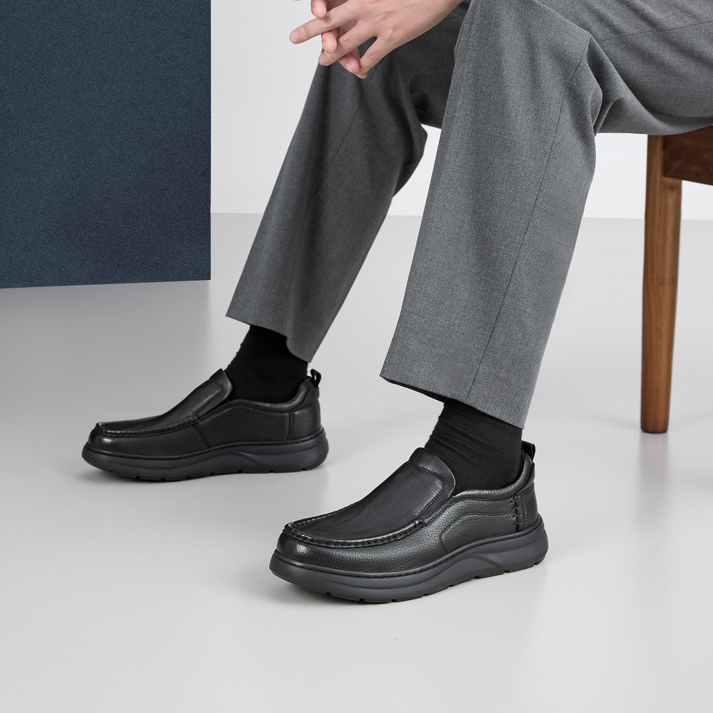 AMBSOM*意大利进口胎牛皮一脚蹬乐福鞋 真皮褶皱皮鞋 休闲皮鞋