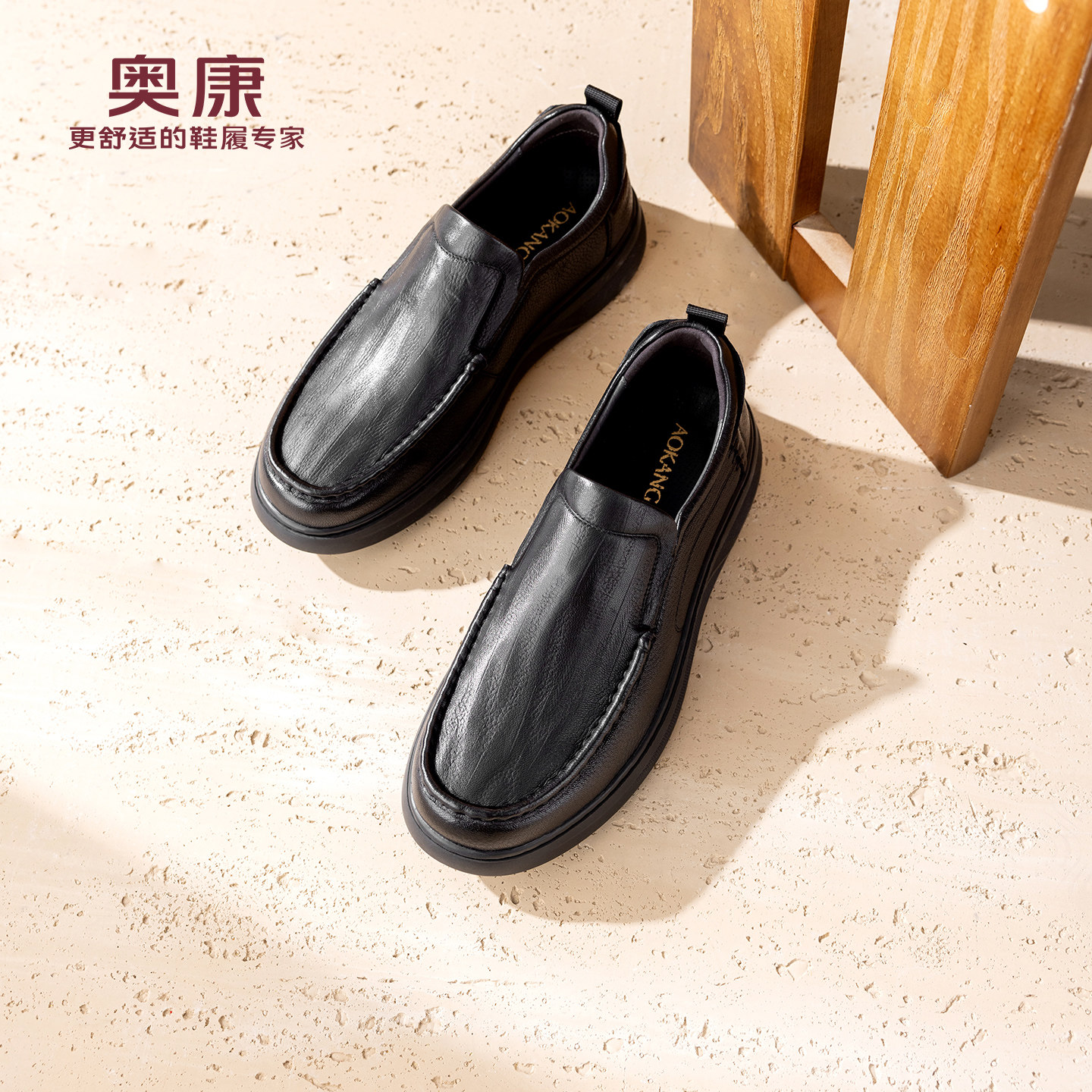 奥康春秋季商务休闲皮鞋男真皮软底乐福鞋舒适一脚蹬套脚爸爸鞋