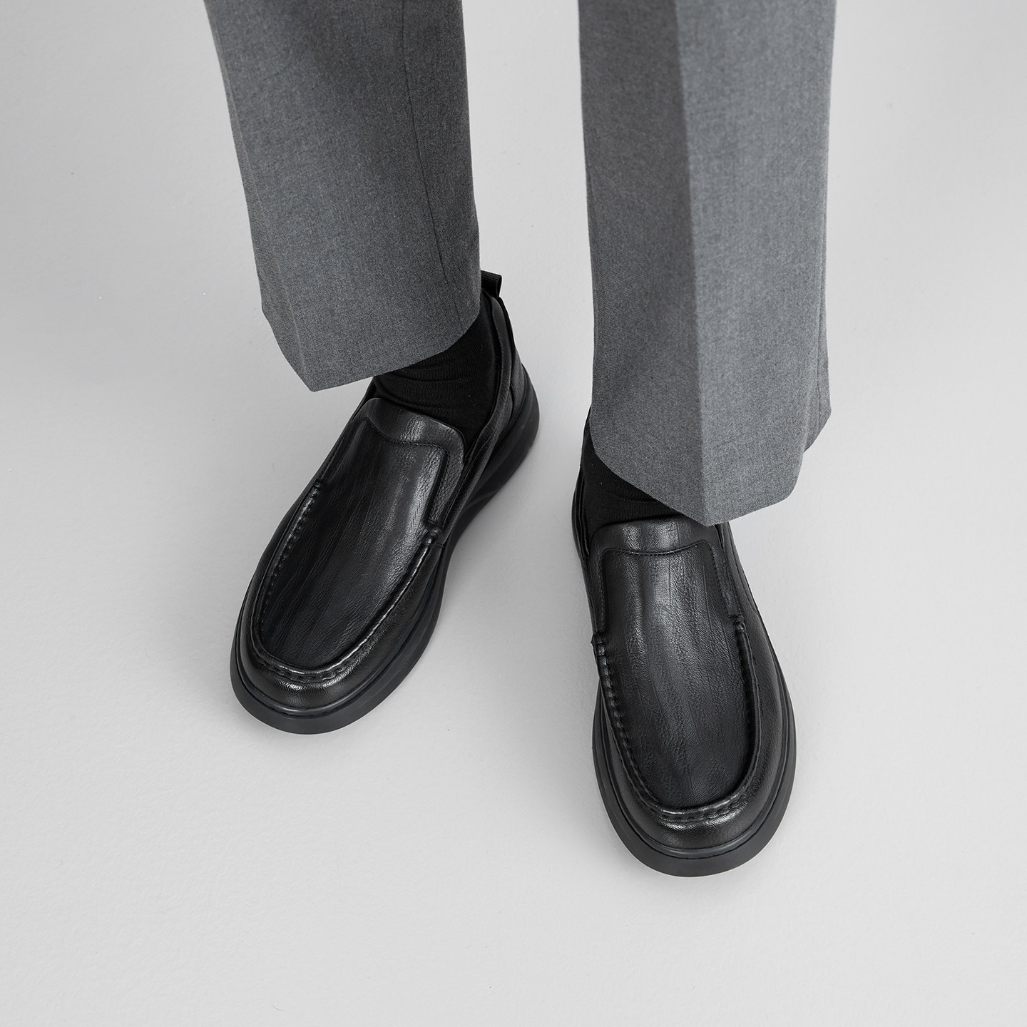 【轻量化增高】chioryn青润乐福鞋男士小牛皮厚底皮鞋休闲豆豆鞋