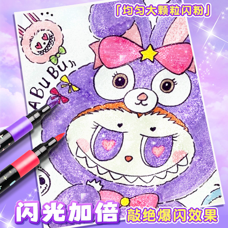 彩色闪光笔学生用儿童闪亮轮廓闪粉高光水彩笔啫喱发光流沙银光