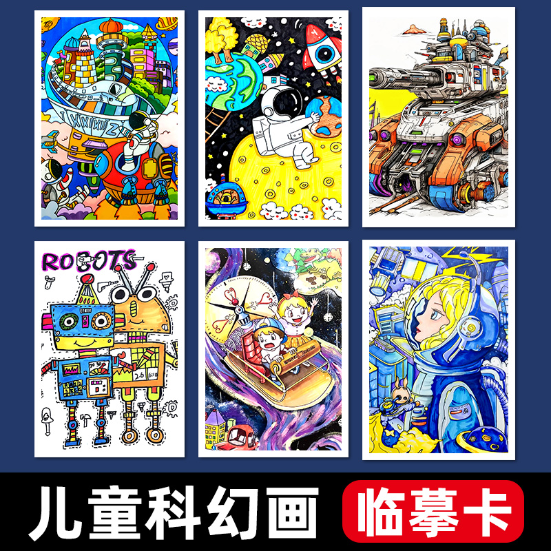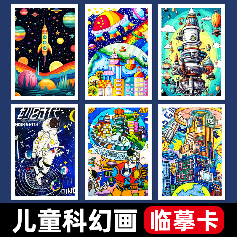儿童科幻画临摹卡创意美术少儿获奖作品手绘精选范画彩色印刷卡片