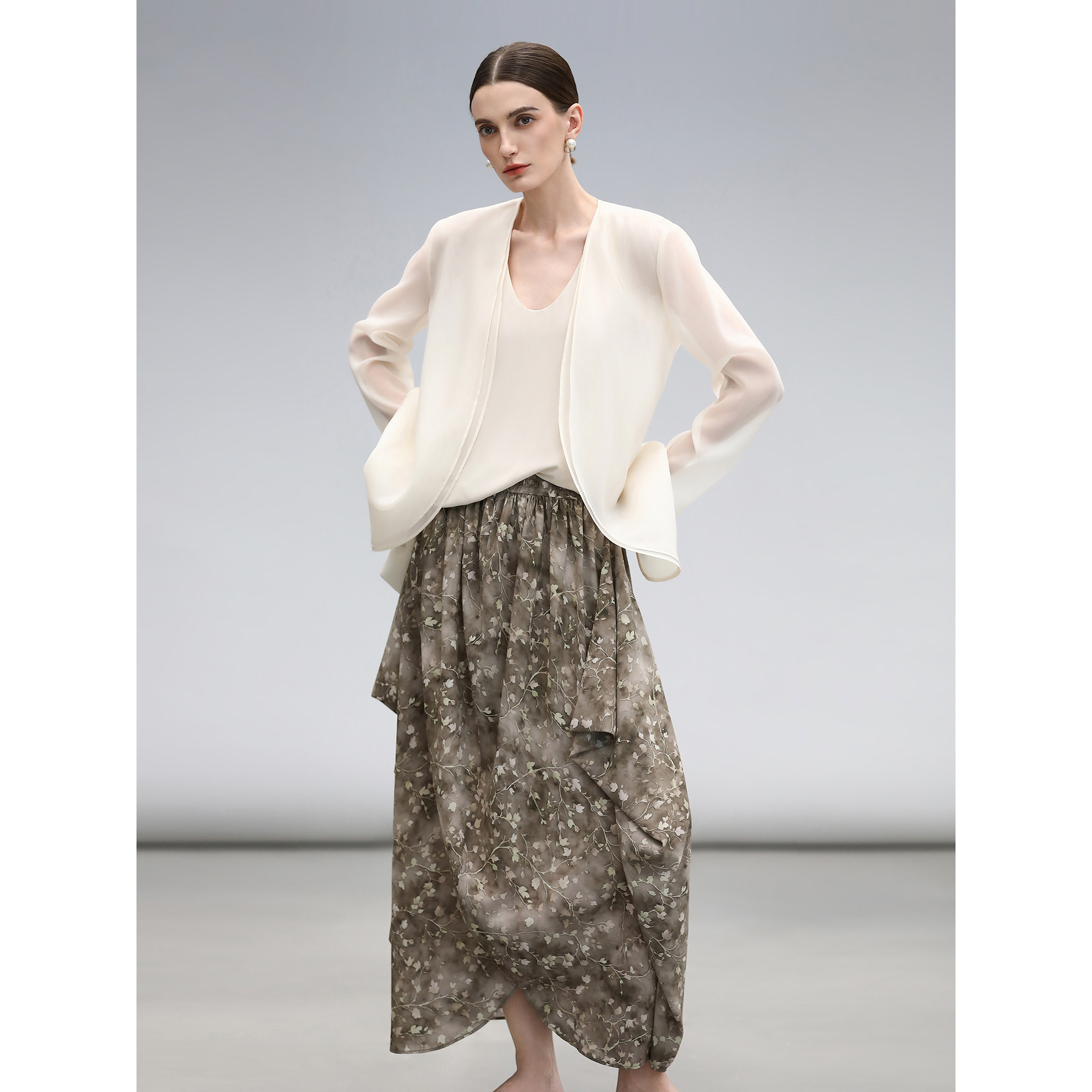 【3件5折】COCOBELLA设计感印花碎花半身裙侘寂风雪纺长裙HS3068