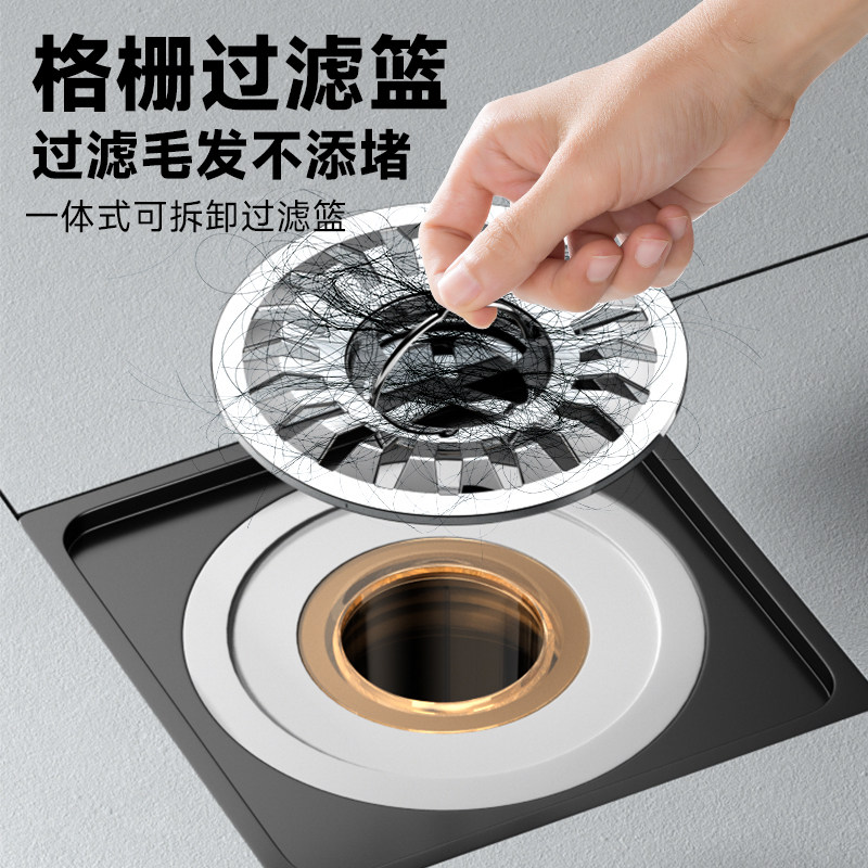 九牧铜合金地漏枪灰大流量防臭防堵卫生间通用浴室洗衣机两用芯盖
