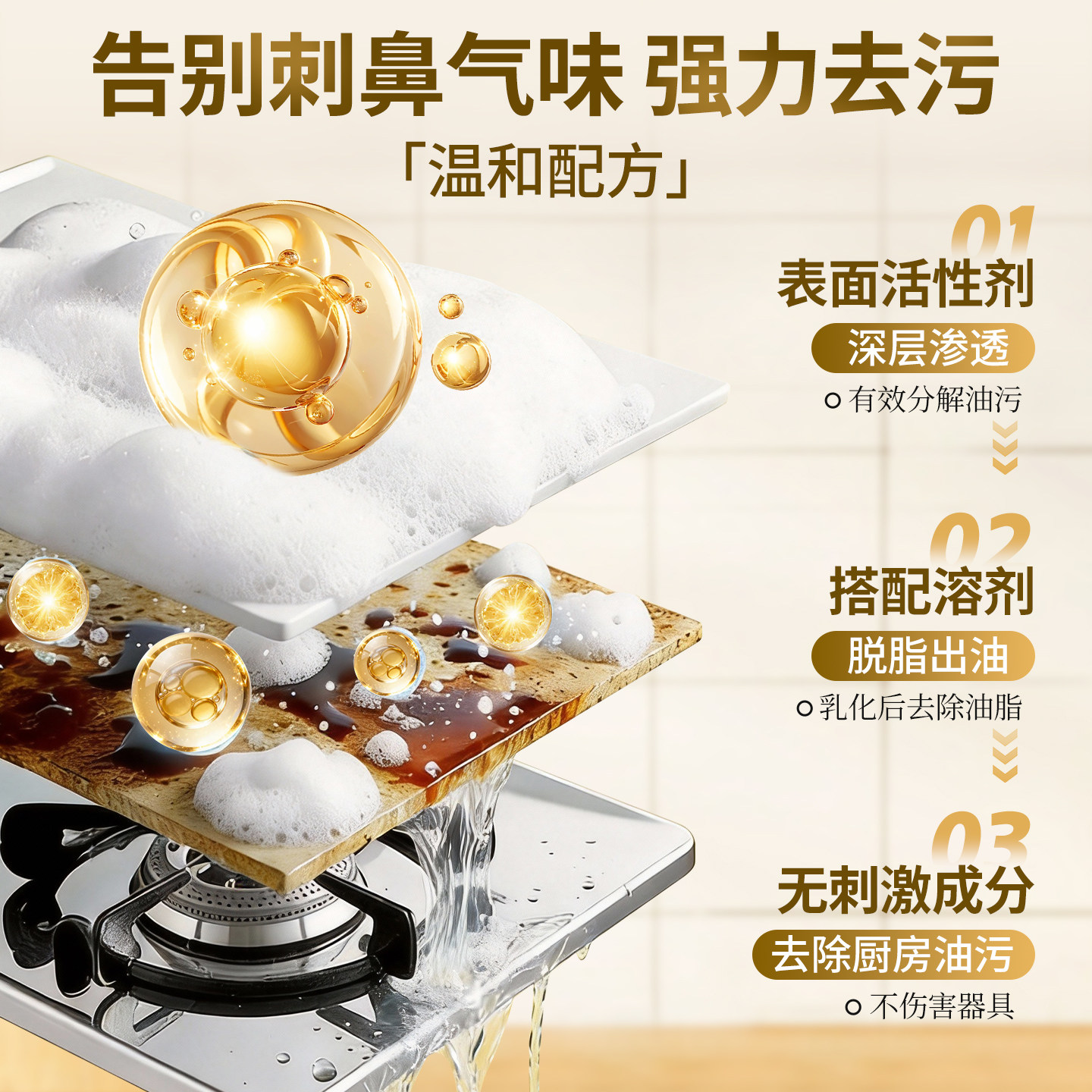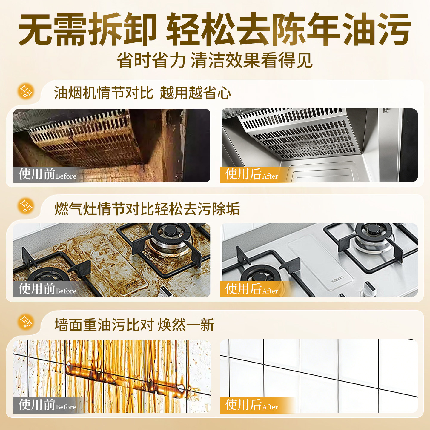 厨房油污净抽油烟机强力清洁剂去重油污清洗剂除垢泡沫型油渍神器