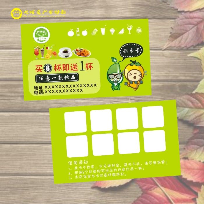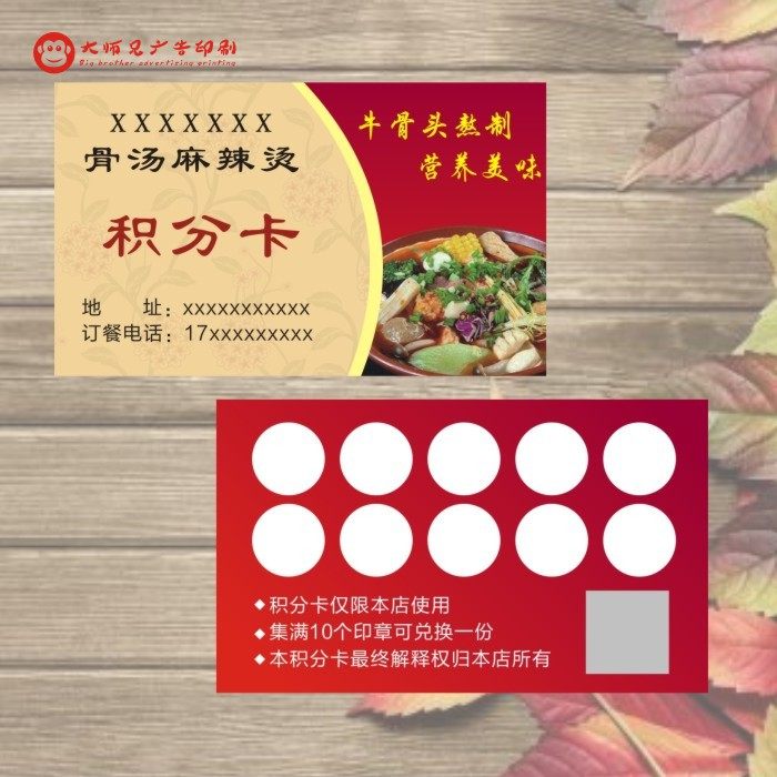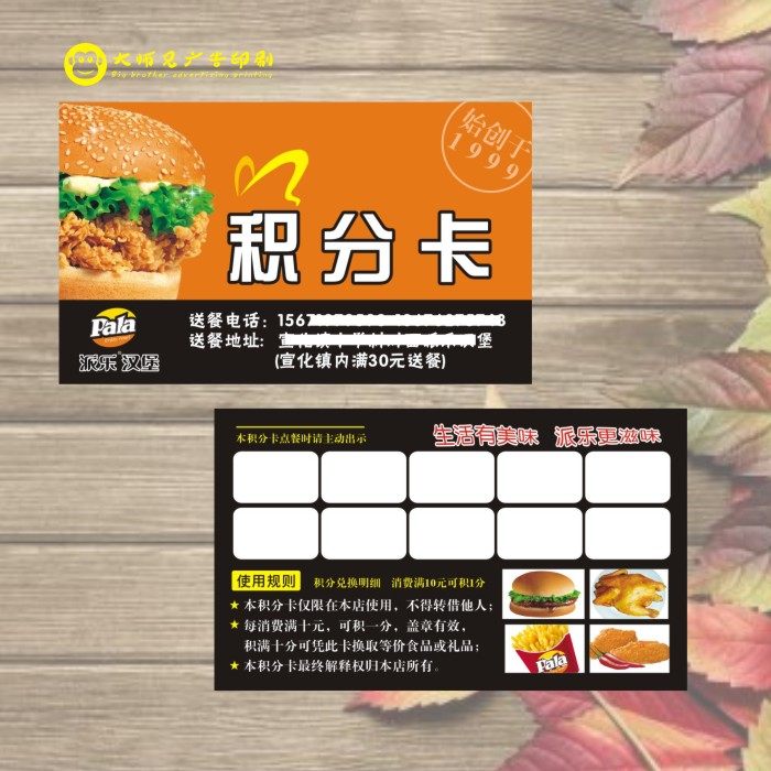 餐饮积分卡美食小吃集点卡烤鱼米线积分卡双面印刷免费设计