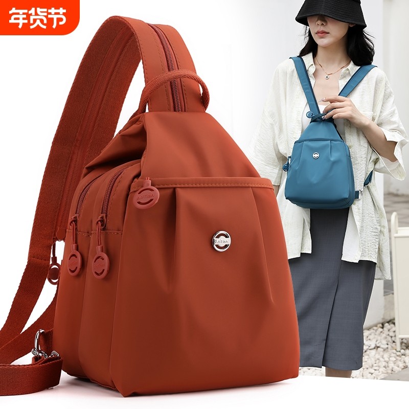 小型双肩包背包女2025新款时尚胸包休闲百搭多功能女士双肩背红色